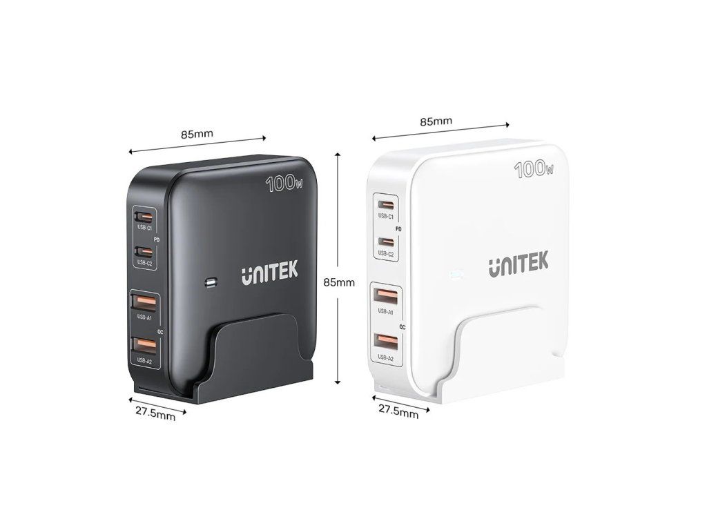 Síťová nabíječka GaN - Unitek P1229AWH01-EU | 100W 2x USB-C 2x USB-A