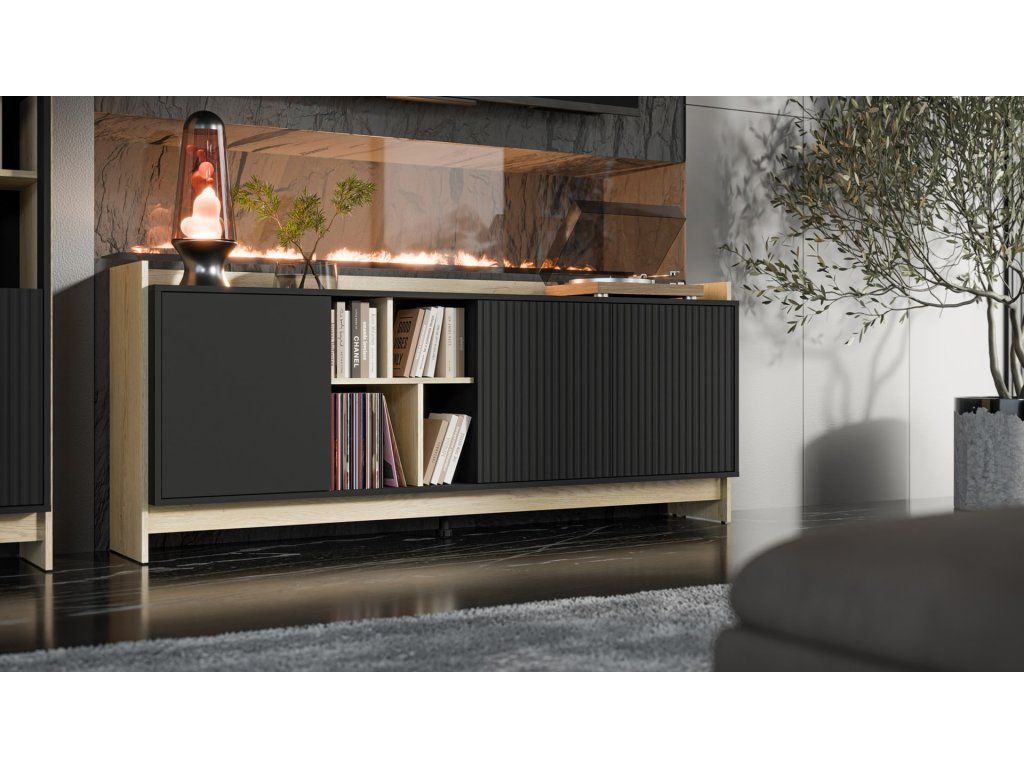 Cama Komoda PORTO 3D 190x38x77 dub/černá