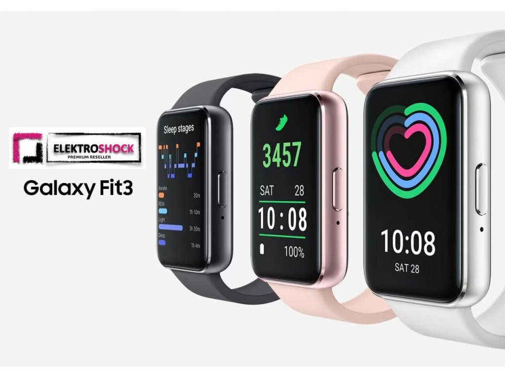 Náramek Galaxy Fit 3 je vybavený optickým snímačem tepové frekvence. Mezi funkcemi nechybí monitoring spánku, stresu a více než 100 cvičebních režimů. Ve výbavě je i senzor pro detekci pádu s možností upozornění na kontakty pro případ nouze. Je tu i reproduktor, a to přesto, že náramek nepodporuje telefonní hovory. Umožní vám ale hovory zavěsit a také poslat předem nadefinované odpovědi na zprávy. Baterie má při běžném používání výdrž až 13 dní a podporuje i rychlé nabíjení, které akumulátor nabije na 65 % za 30 minut.