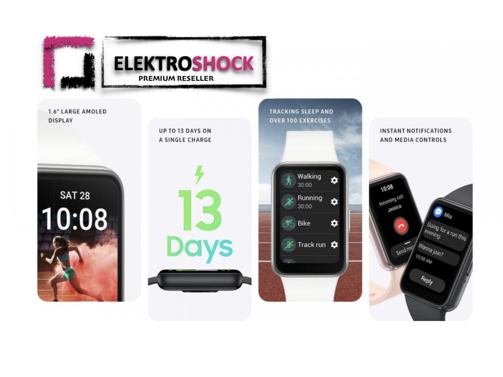 Náramek má poměrně velký obdélníkový barevný displej. Na jeho pravé hraně je fyzické tlačítko. Řemínek je silikonový v barvě černé, bílé a růžové. AMOLED displej má úhlopříčku 1,6 palce a rozlišení 402 × 256 pixelů.