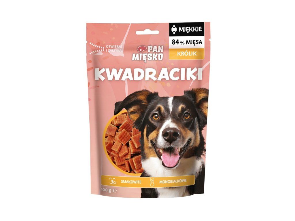 PAN MIĘSKO Squares Rabbit - pamlsek pro psa - 100g| Veterinární klasifikace | Pochoutka |