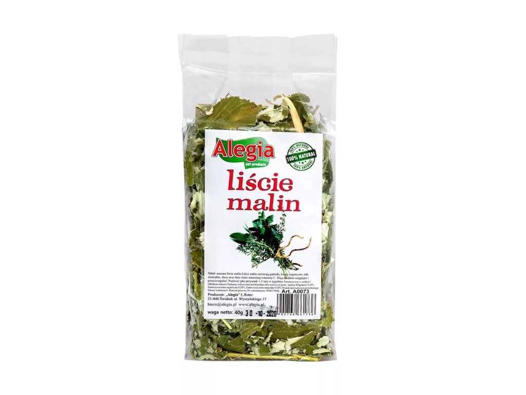 ALEGIA Raspberry leaves - lahůdka pro hlodavce a králíky - 40g| Kategorie produktu | Potraviny, Ošetřuje |