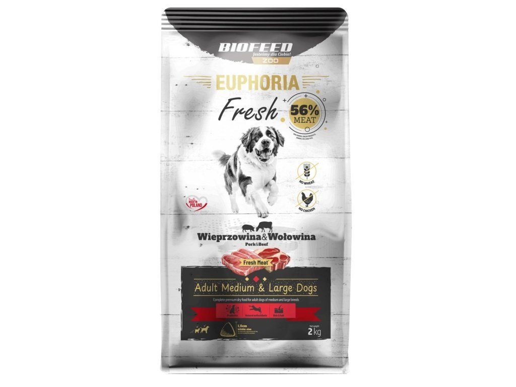 BIOFEED Euphoria Fresh Adult Medium & Large Pork with beef - suché krmivo pro psy - 2kg