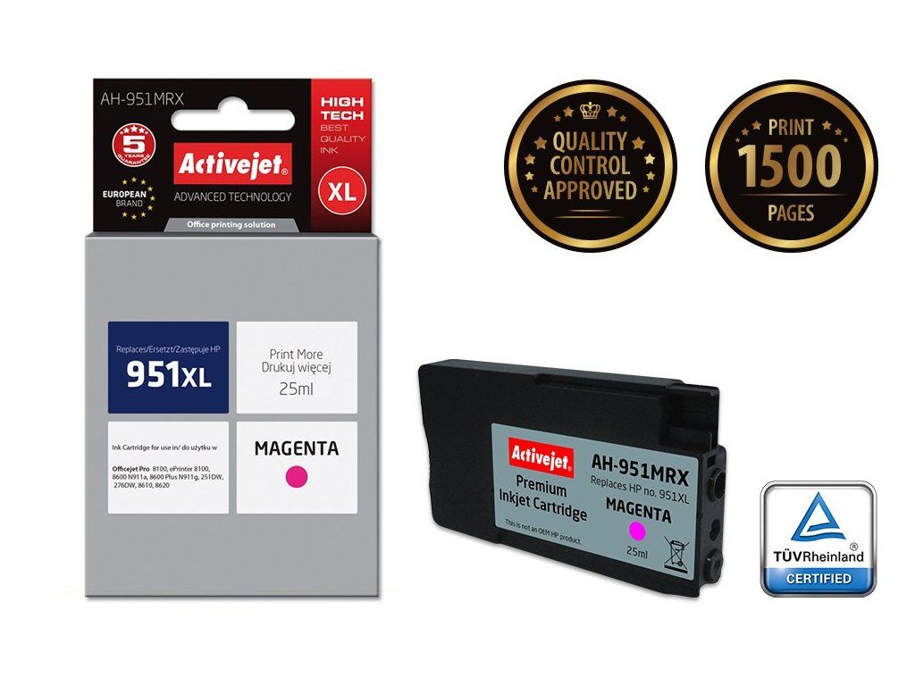 Activejet AH-951MRX Inkoustová náplň pro tiskárnu HP, náhrada za HP 951XL CN047AE; Premium; 25 ml; fialová| Počet kusů v balení | 1 kusů |