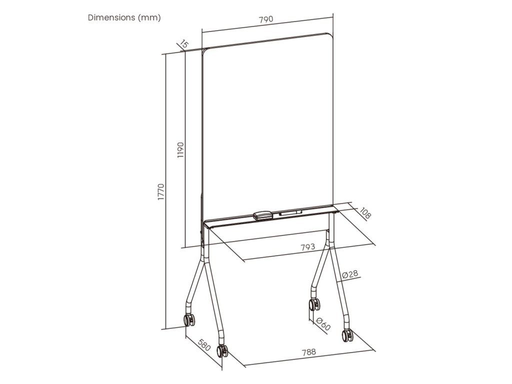 Mobilní tabule Ergo Office se suchým stíráním, vertikální orientace, bílá, jednostranná, s policí, rozměry tabule 1190x790 mm, ER-305| Další vybavení | ANO |