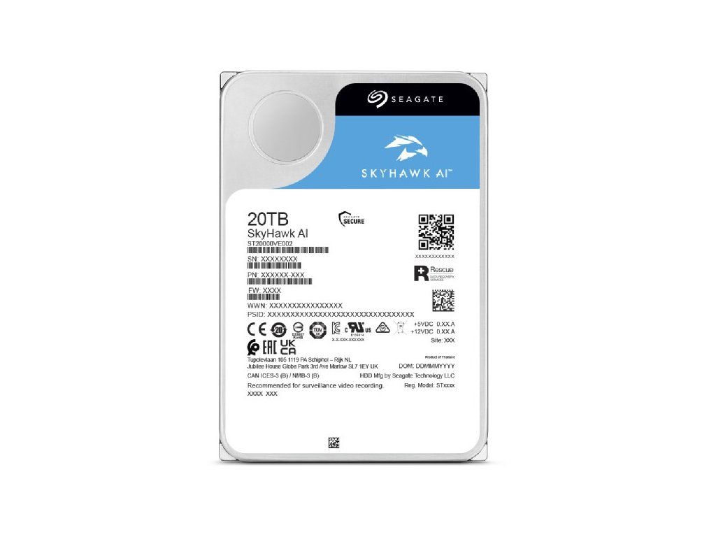Seagate SkyHawk AI vnitřní pevný disk 20 TB 7200 ot/min 512 MB 3.5" Serial ATA III| Velikost pevného disku | 3.5" |