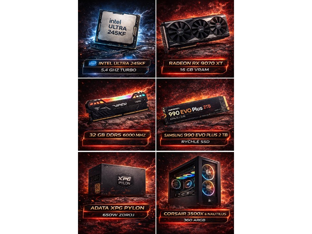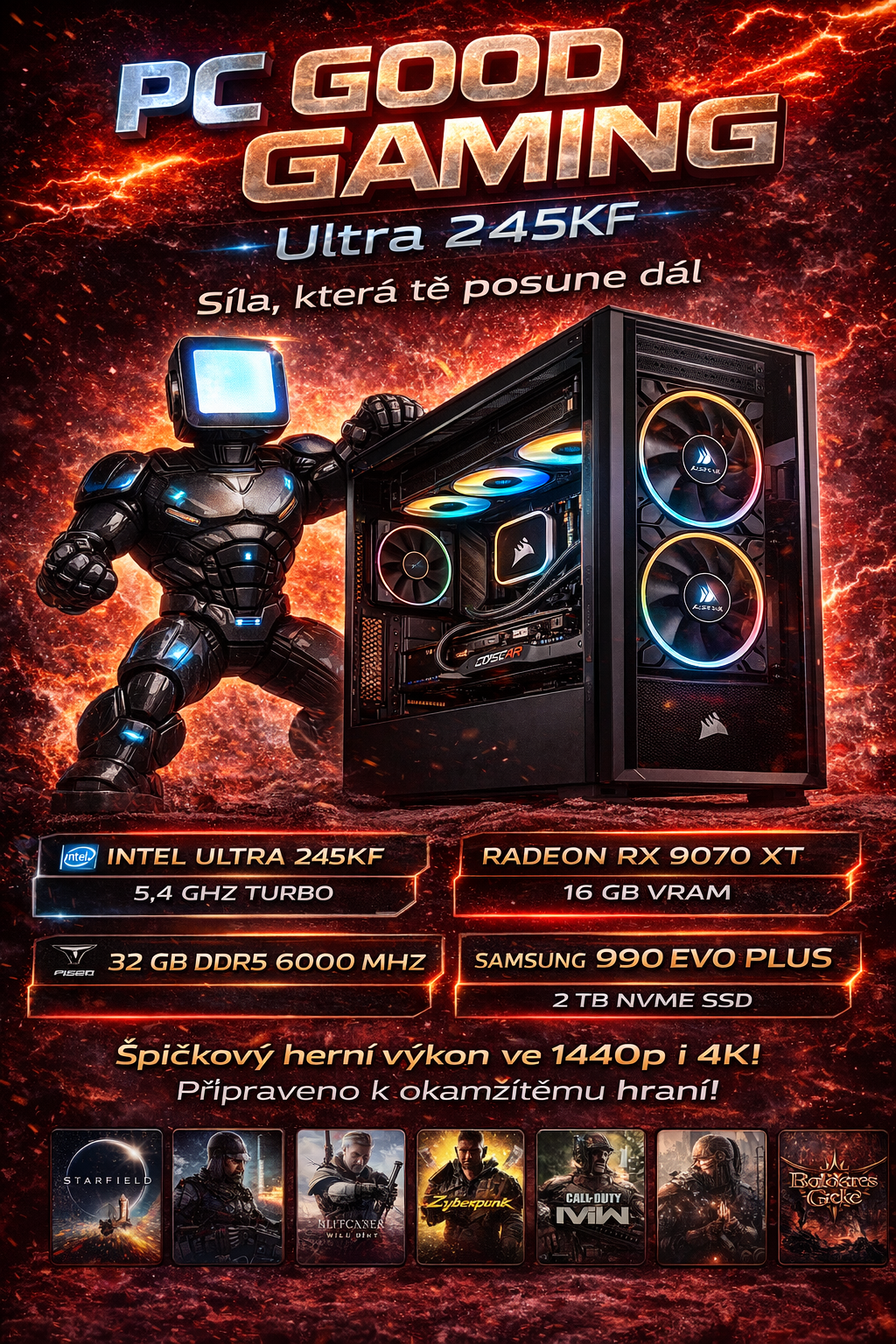 PC Good Gaming je moderní herní sestava pro hráče, kteří chtějí vysoký výkon, plynulost a rezervu do budoucna. Kombinace výkonného procesoru Intel nové generace, rychlé DDR5 paměti a grafické karty Radeon RX 9070 XT dělá z této sestavy ideální volbu pro náročné hraní i multitasking.