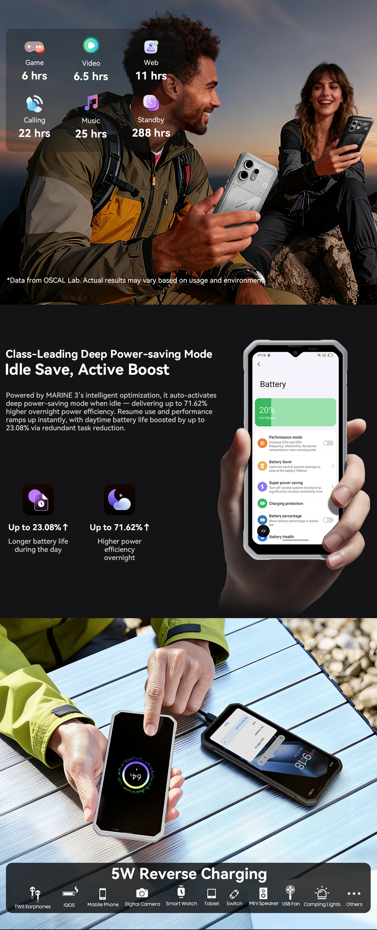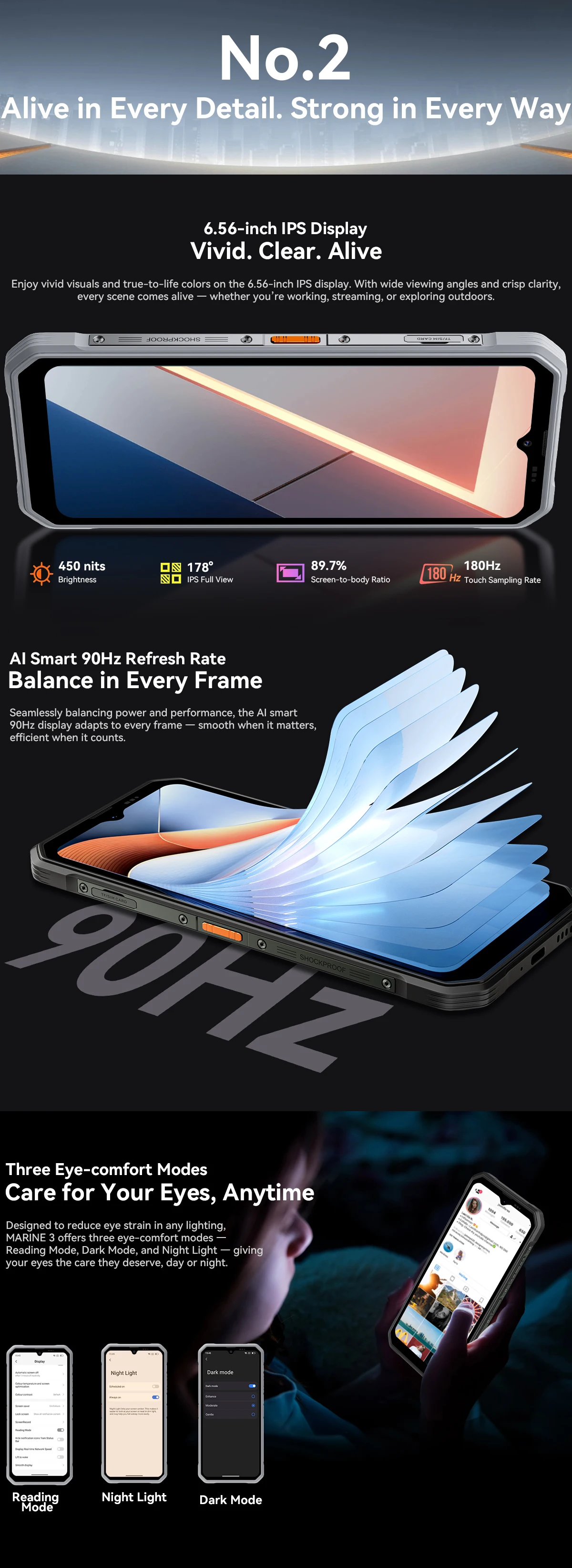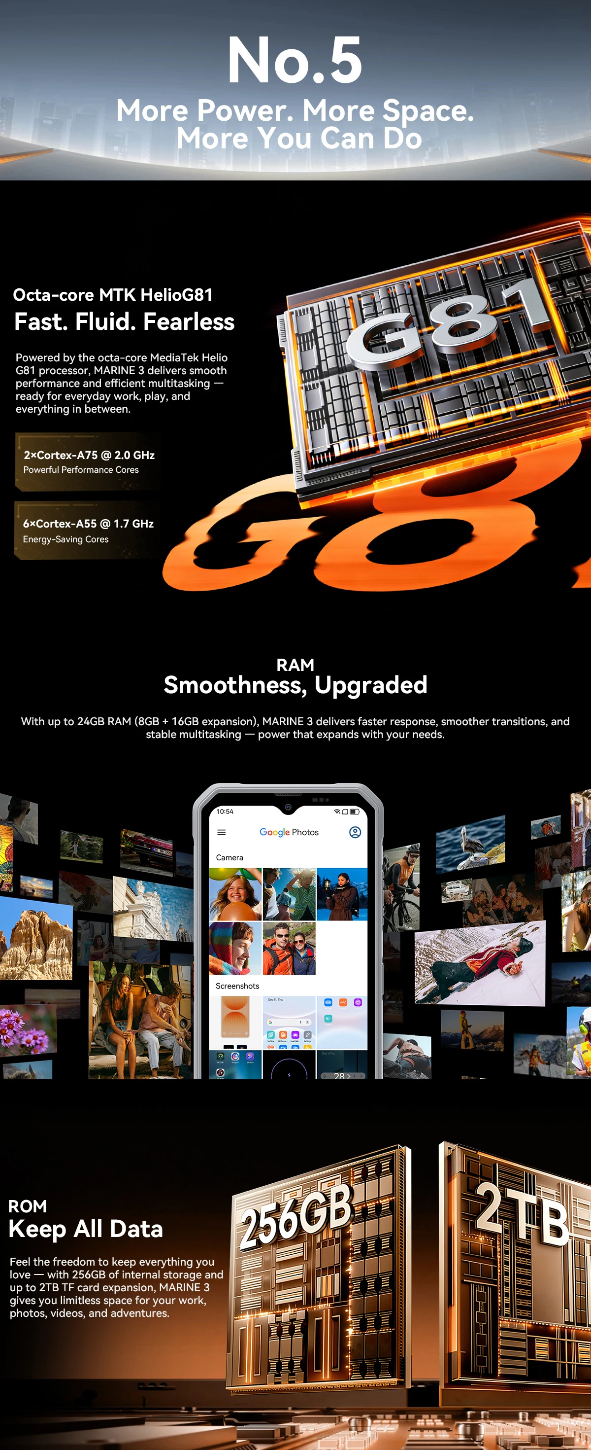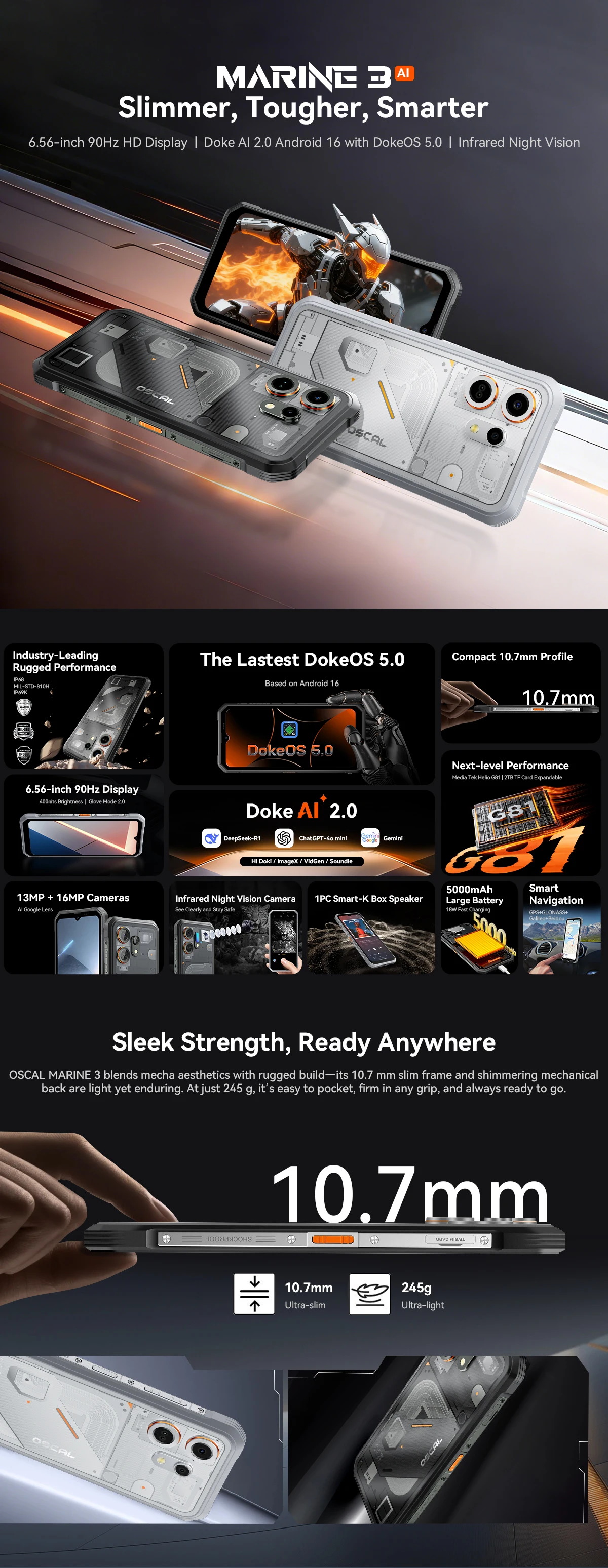 EU jazyky 12 mm ultratenké tělo Kapacita baterie 6500 mAh 5G MediaTek o rozměru 6100+ 48MP hlavní fotoaparát IP68 & IP69K & MIL-STD-810H Android 14.0...