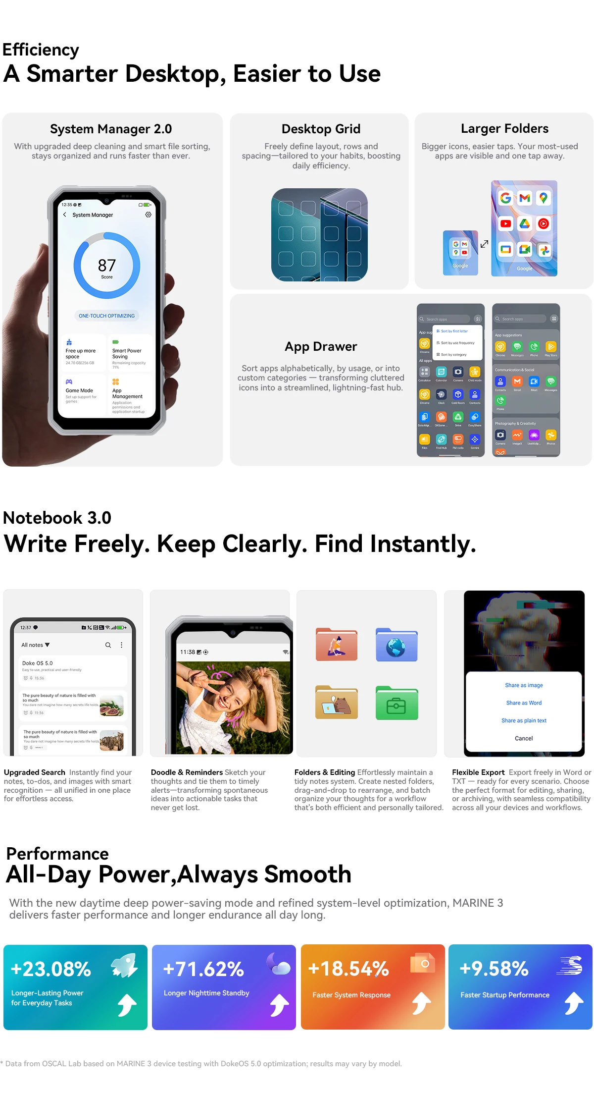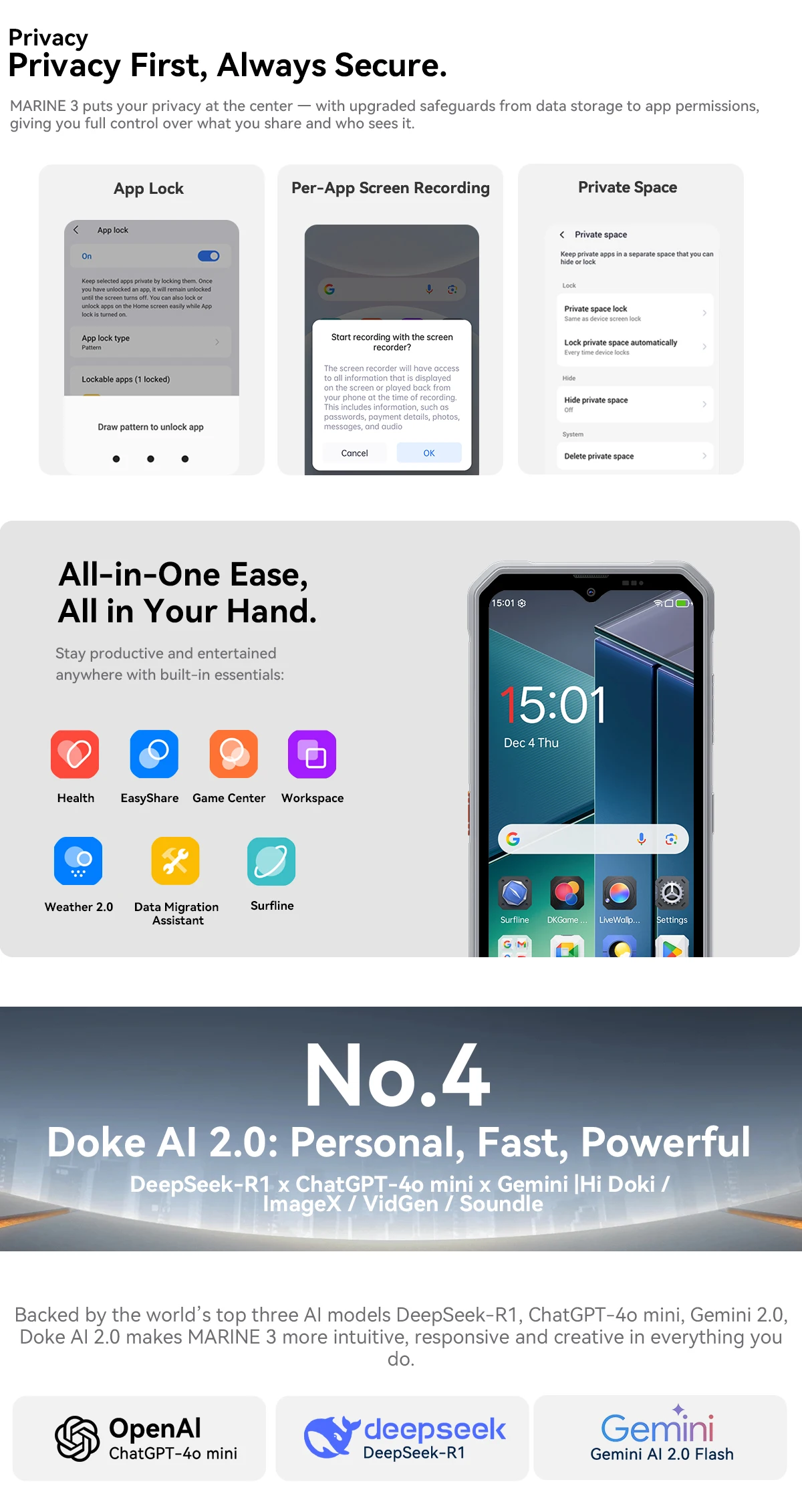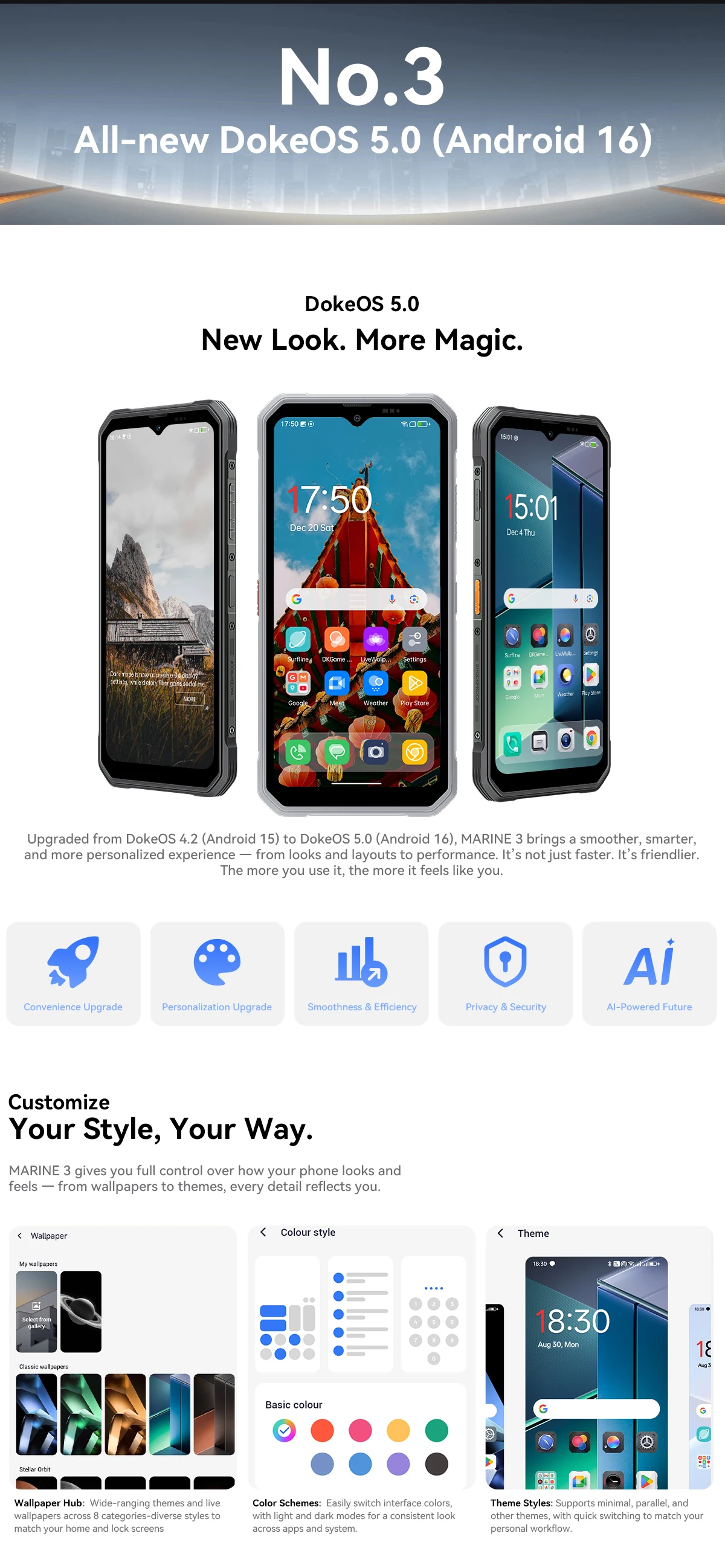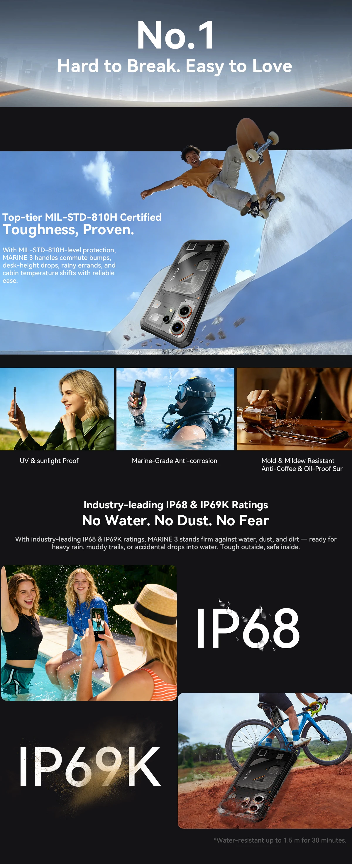 EU jazyky 12 mm ultratenké tělo Kapacita baterie 6500 mAh 5G MediaTek o rozměru 6100+ 48MP hlavní fotoaparát IP68 & IP69K & MIL-STD-810H Android 14.0...