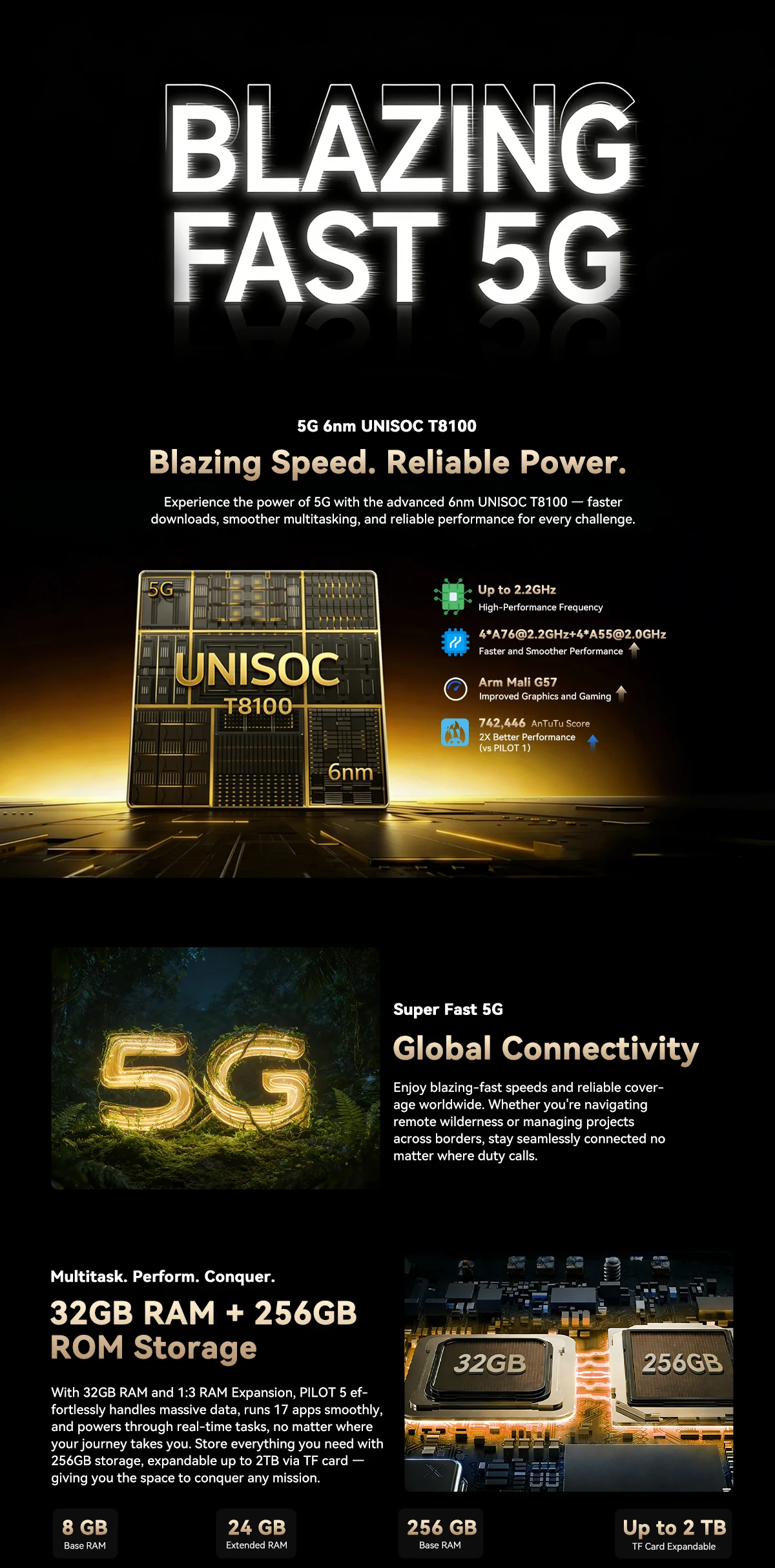 CPU:Octa-core 5G UNISOC T8100, 6nm, až 2,2 GHz