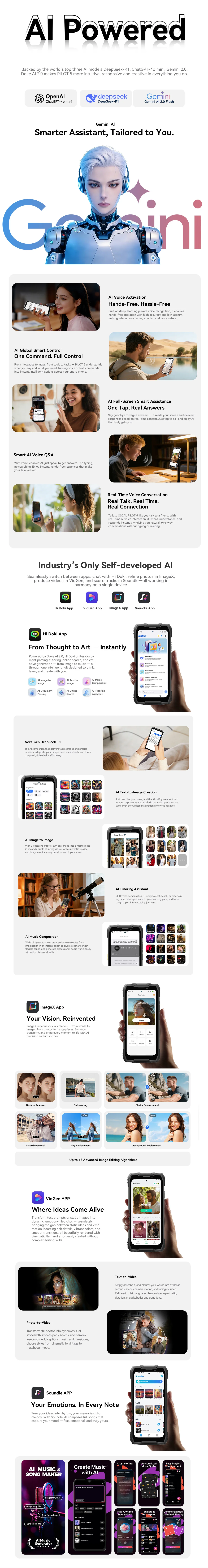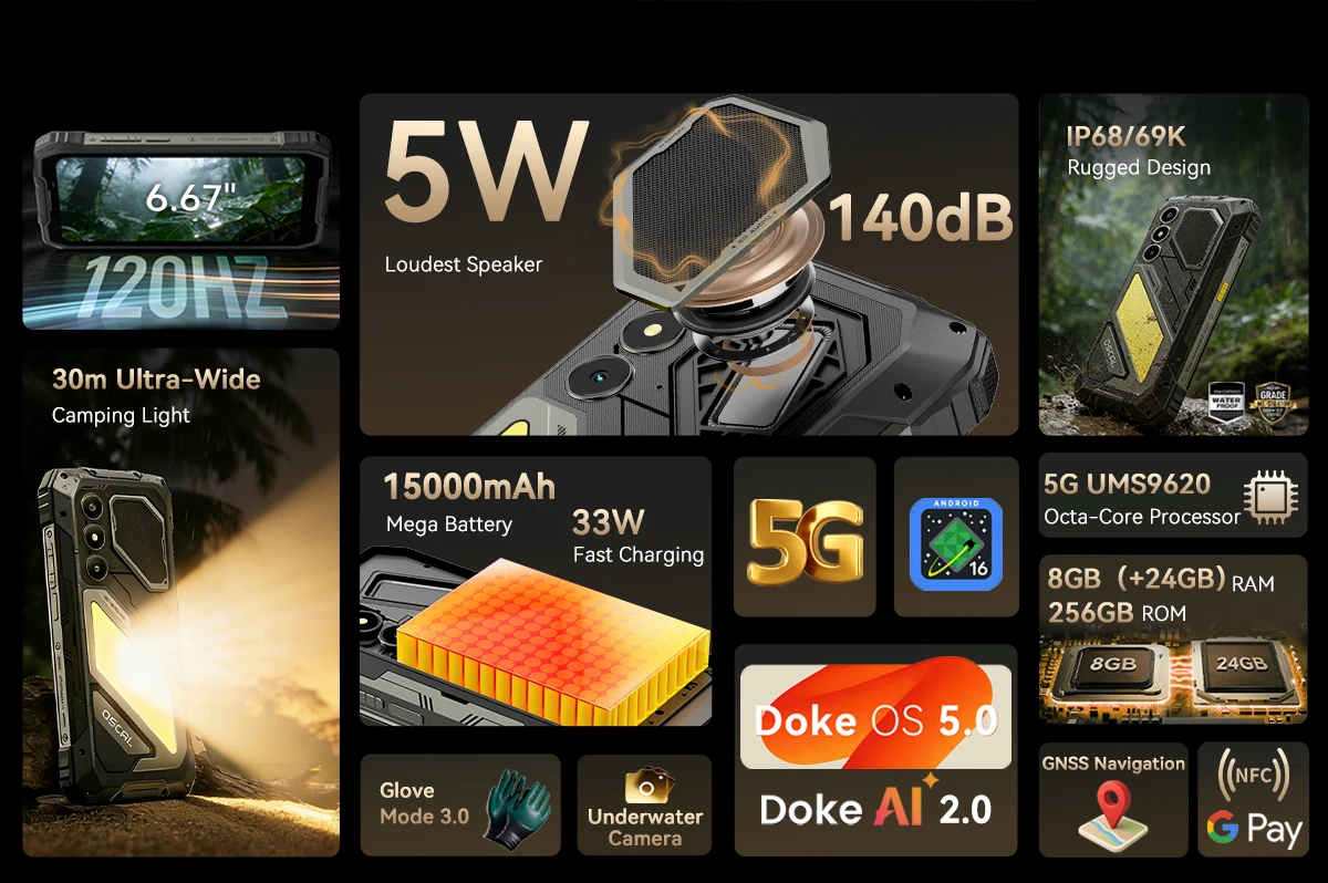 · Android 13 · Laser projektor· Až 22 GB RAM + 512 GB ROM· Noční vidění 64 MPx· Baterie 15 500 mAh Všechny EU jazyky