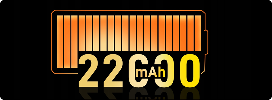 V Max je vybavený dosud největší baterií, kterou kdy Doogee do svých telefonů zakomponovalo. Kapacita 22 000 mAh udrží telefon naživu po mnoho a mnoho dní. Je tak vhodný pro každého, kdo se zdržuje často mimo domov, putuje v přírodě a vydává se na dlouhé cesty. Velkoobjemová baterie je vykoupena vyšší hmotností telefonu, když vám však telefon vydrží fungovat až 2 300 hodin, nějaký ten gram navíc se rychle zapomene. Kromě toho je možné telefonem nabíjet jiná zařízení díky reverznímu nabíjení. Kapacitu 22 000 mAh tak vužijete i jako powerbanku třeba pro sluchátka.