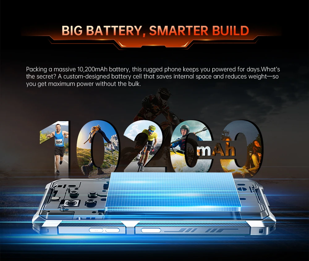 Tento odolný telefon s masivní baterií s kapacitou 10 200 mAh vám udrží energii na celé dny.