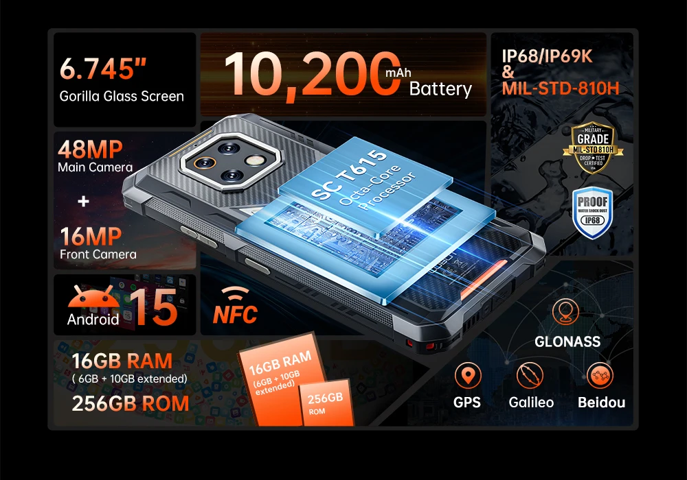 S certifikací IP68/IP69K a MIL-STD-810H je odolný vůči vodě, prachu a nárazům. Od bouřlivých stezek až po náročná pracoviště je vaším nebojácným společníkem na každý den.