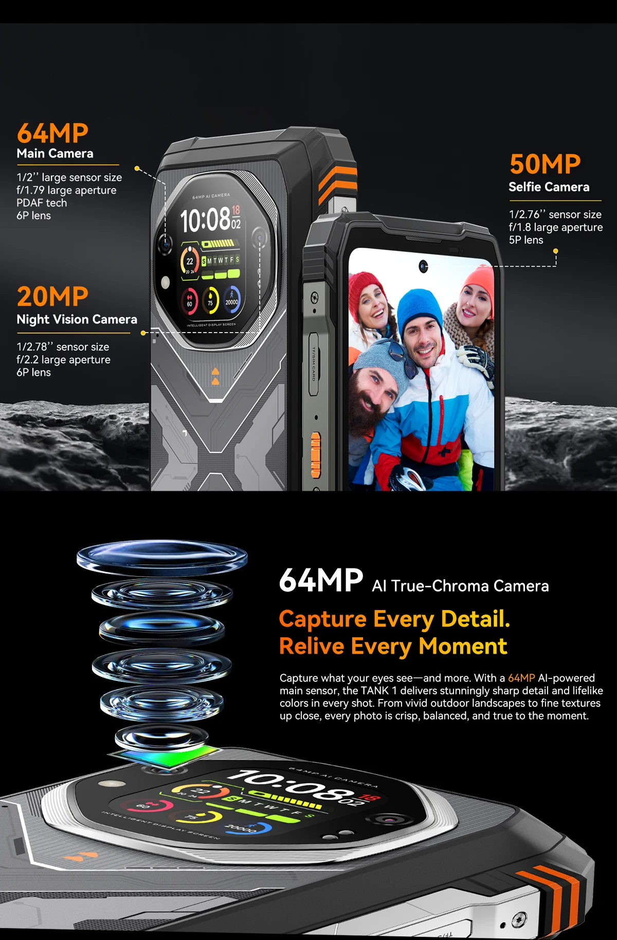 Odolný smartphone - 6,67" AMOLED displej 2400x1080, 120 Hz, Dimensity 8020 2,6 GHz, trojitý hlavní fotoaparát 50 + 64 + 50 + 16 MPx, přední kamera 50 MPx, 12 GB RAM, interní...