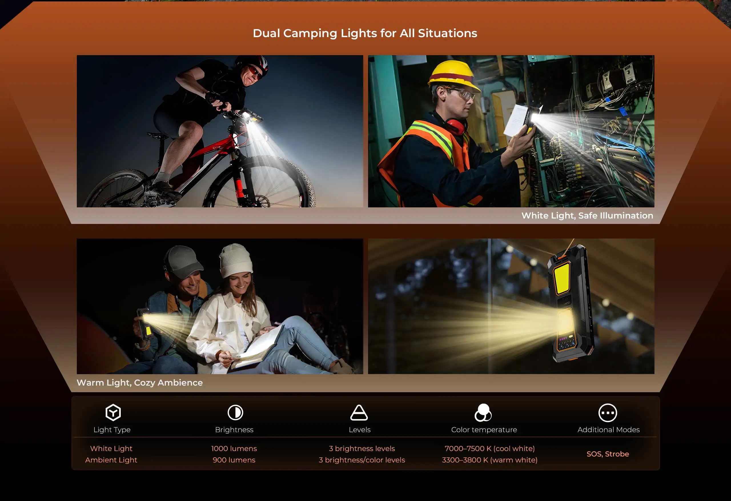Samostatně ovládaná duální kempingová světla | Baterie 10 000 mAh,