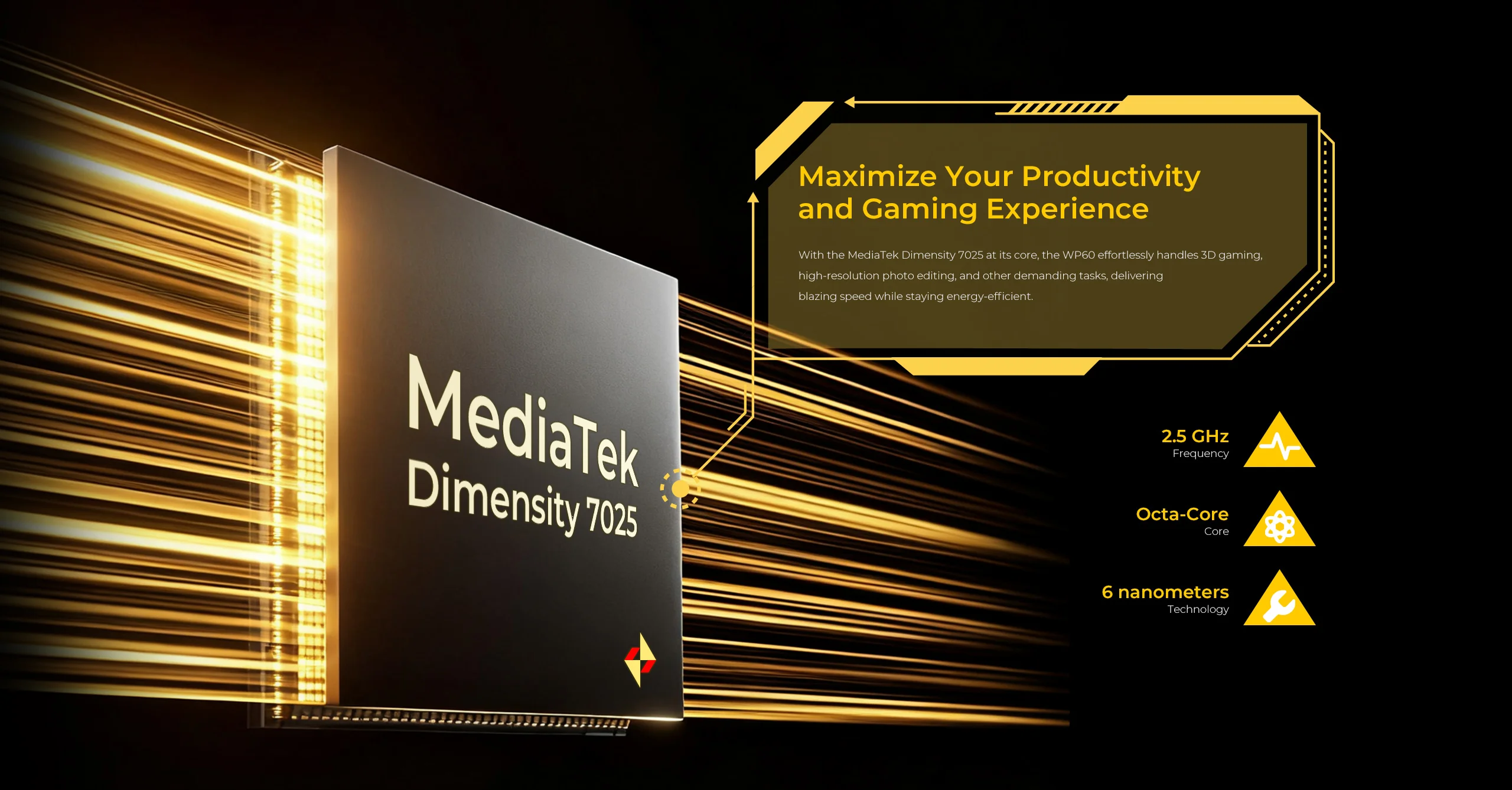 Model CPU: MTK Dimensity 7025, osmijádrový (2x 2,5 GHz – Cortex-A78;