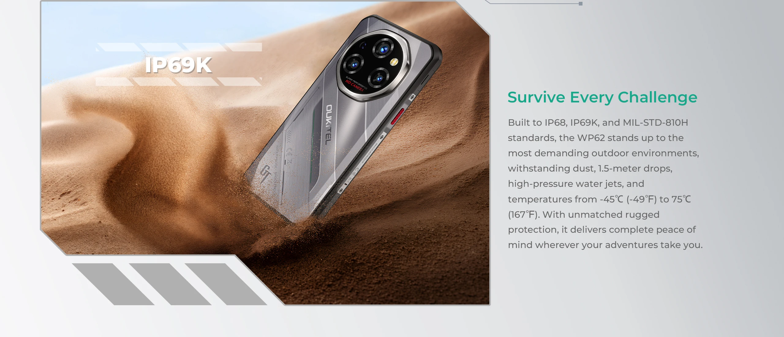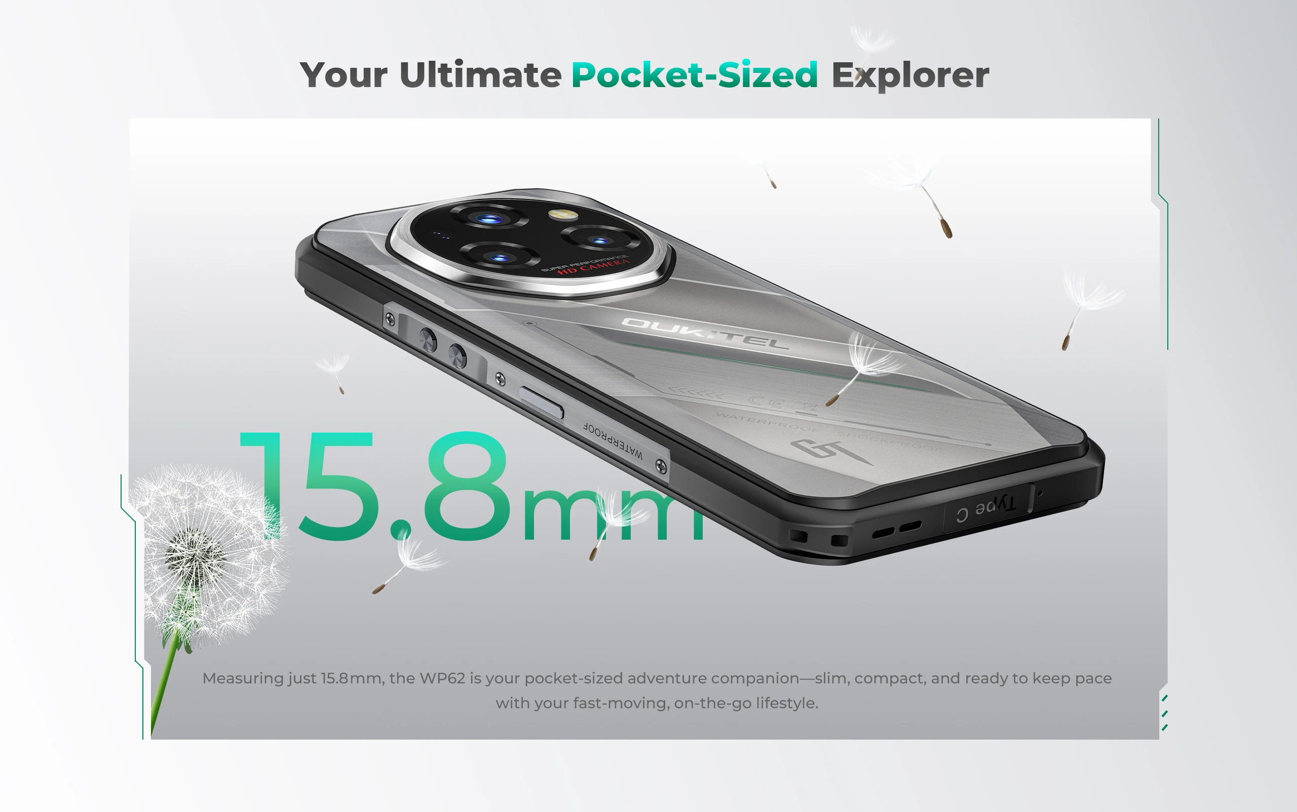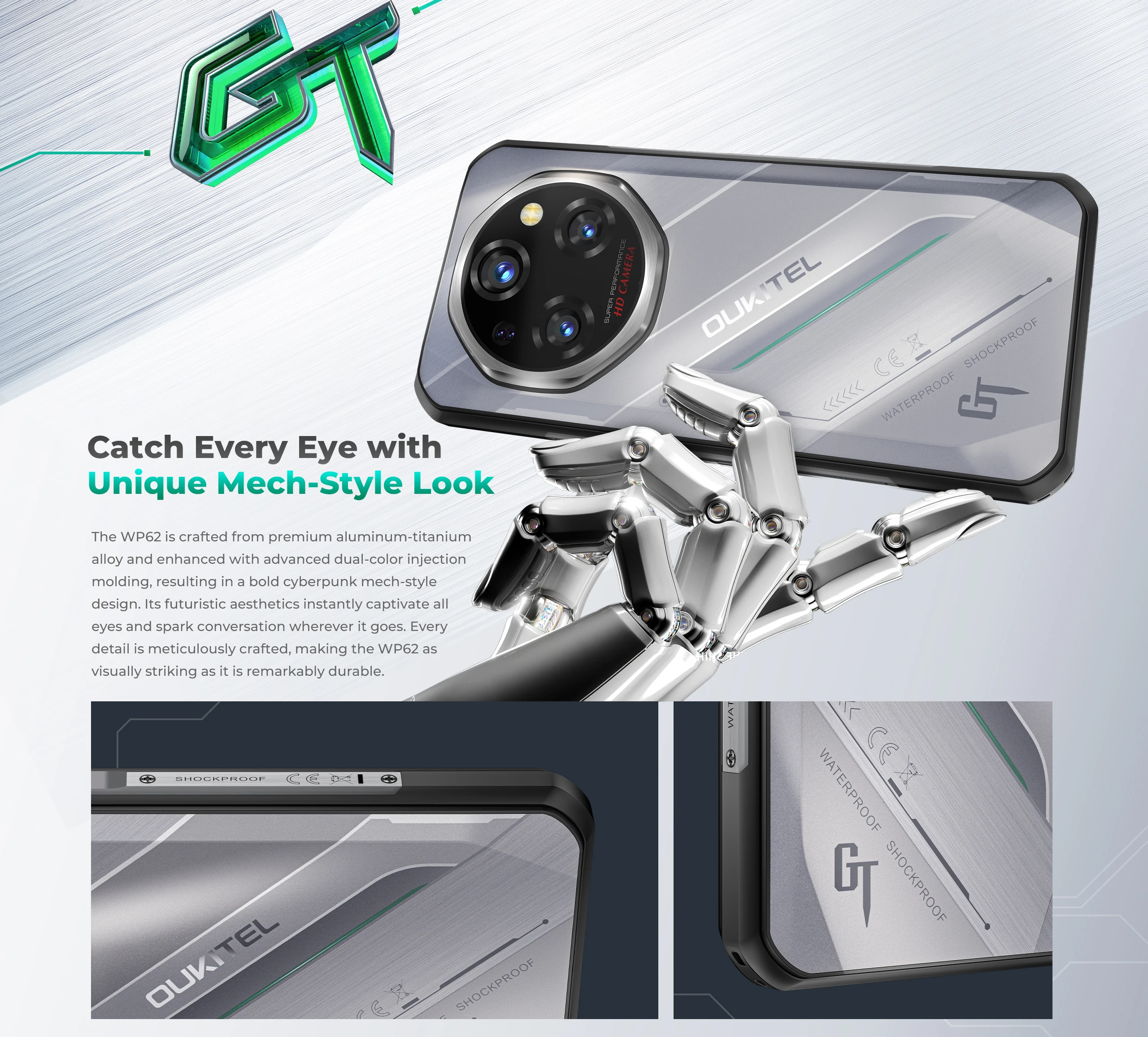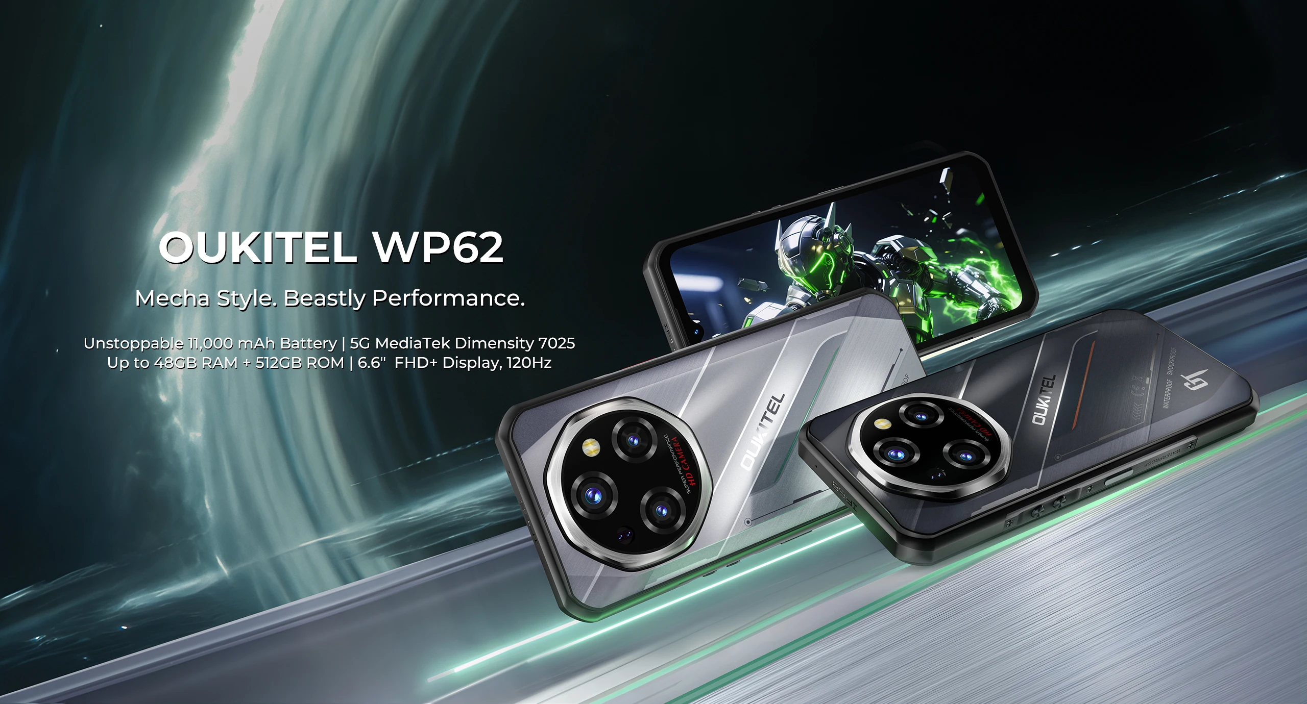 Odolný smartphone Oukitel WP62 5G 48 GB 8 + 256 GB, 6,6" FHD+ 108MP fotoaparát, mobilní telefon, 11 000 mAh 33 W Android 15
