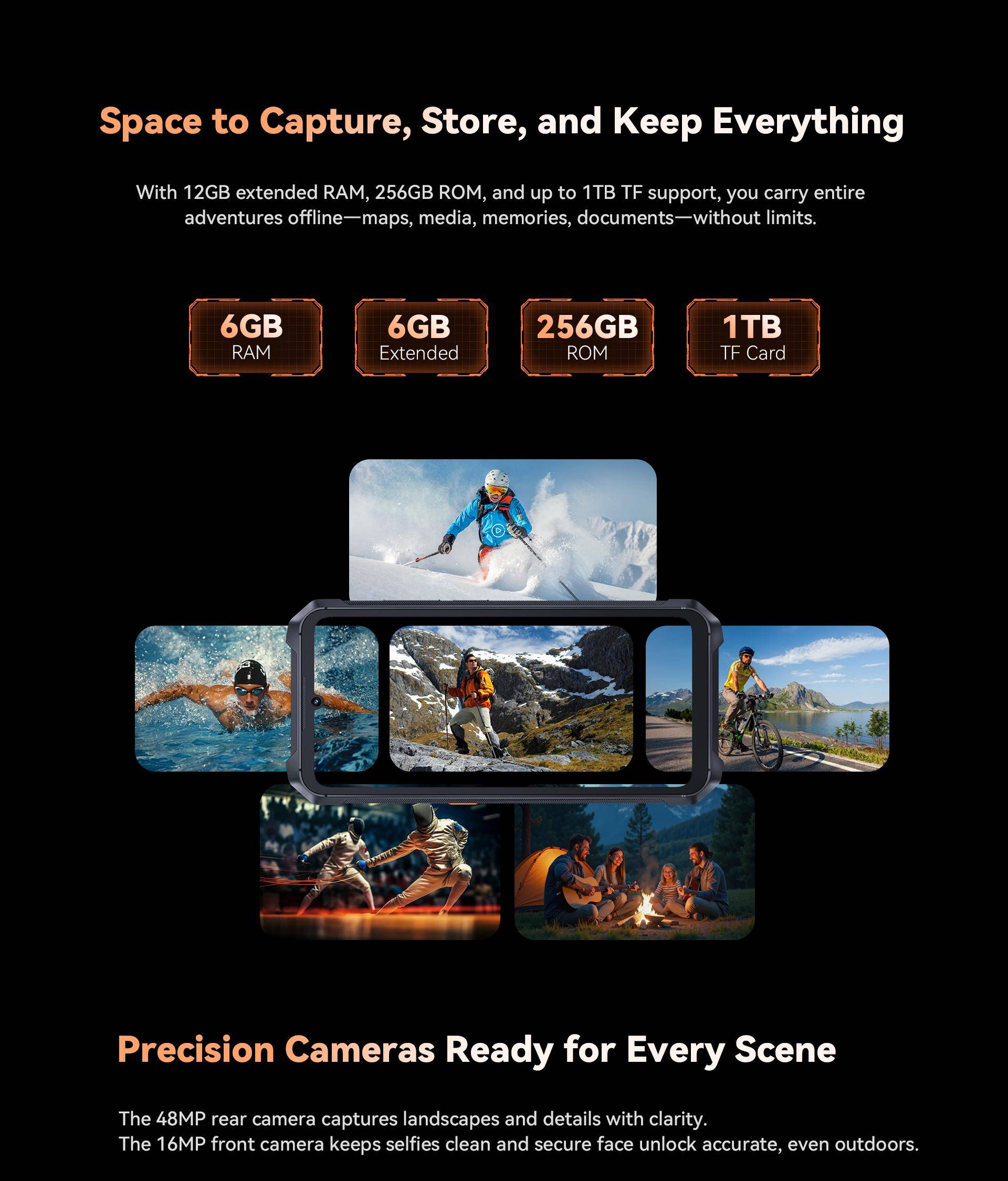 Odolný smartphone - 6,78" LCD displej, trojitý hlavní fotoaparát 64 + 20 + 2 MPx, přední kamera 20 MPx, 12 GB RAM, interní paměť 256 GB, baterie 9800 mAh, Dual SIM s...