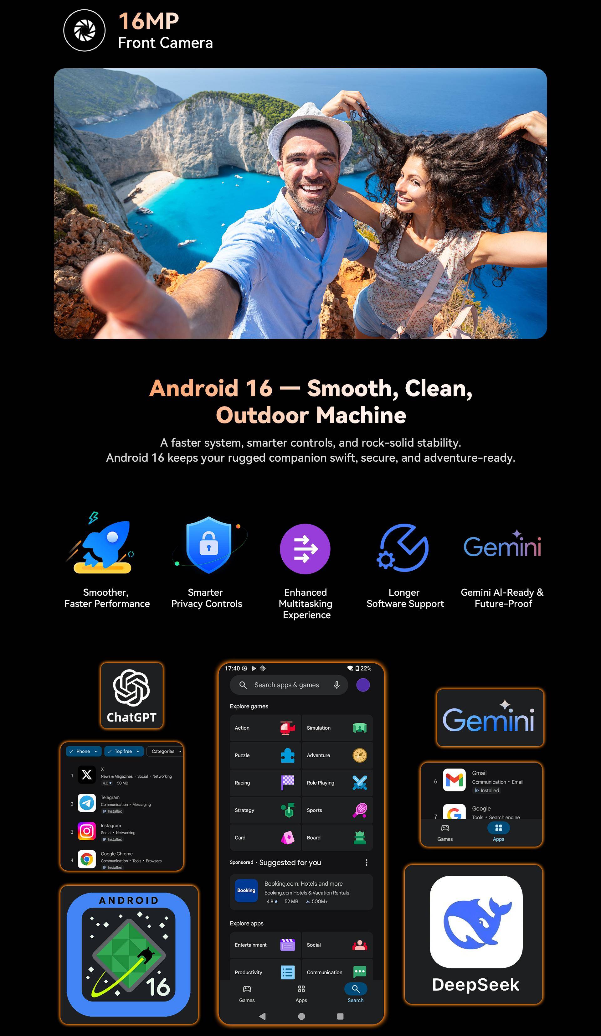 OSCAL Marine 2 Rugged Smartphone AI, 6,56'' HD+ displej, Unisoc T615, 4GB/64GB , 11000mAh, Android 15 Phone NFC