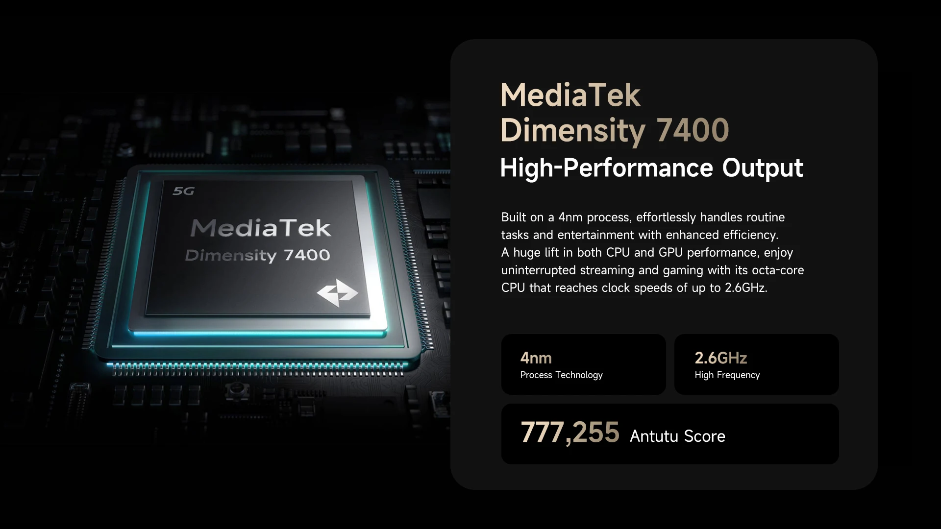 Díky procesoru MediaTek NPU 655 se výrazně zlepšuje výkon úloh s využitím umělé inteligence, což vede k inovativním zážitkům, ostřejšímu obrazu, optimalizované spotřebě energie a vylepšeným celkovým možnostem.