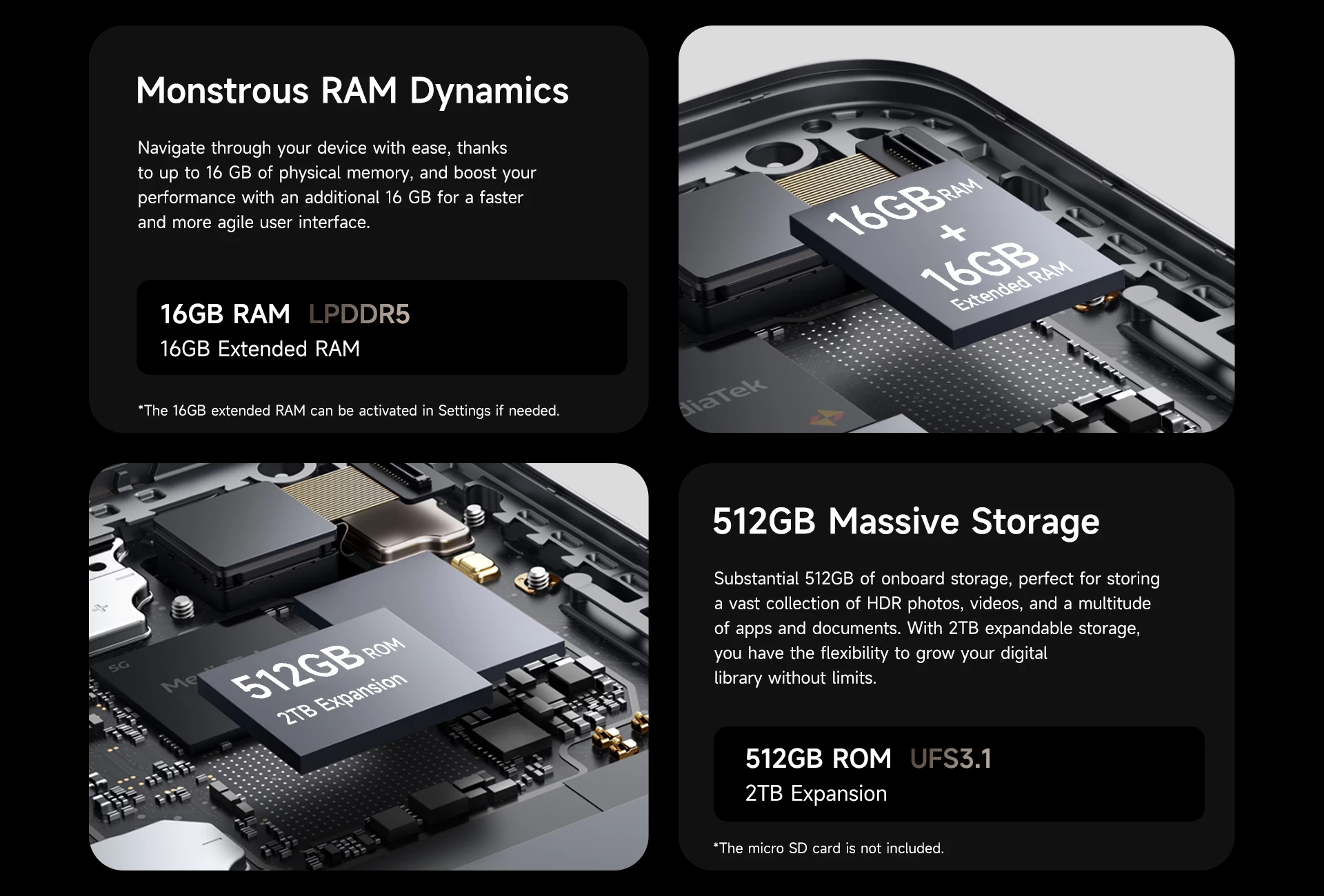 Cubot MAX 5 (5G) Špičkový výkon, nekonečná hra! MediaTek 8200, 4nm, 3,1 GHz 6,95'' velká obrazovka s obnovovací frekvencí 144 Hz Až 24 GB RAM + 256 GB ROM, DDR5 EU jazyk