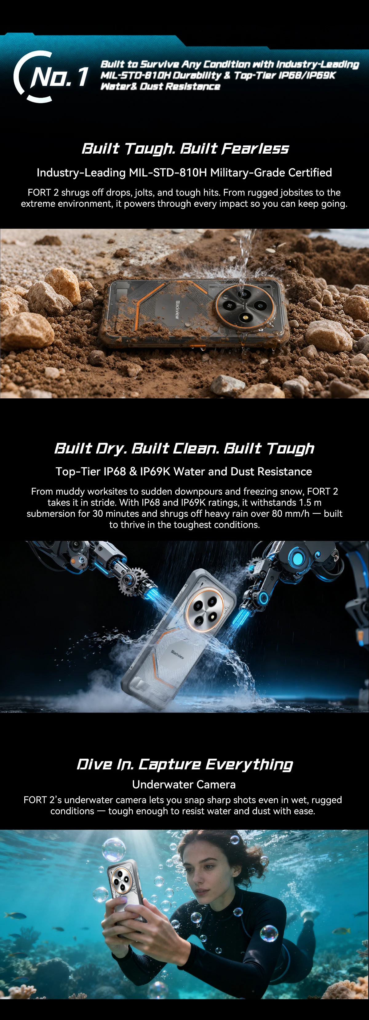 - Odolná konstrukce: Navzdory štíhlému tělu splňuje nejpřísnější certifikace IP68, IP69K a armádní standard MIL-STD-810H. Je odolný proti vodě, prachu a pádům z výšky až 1,5 metru.