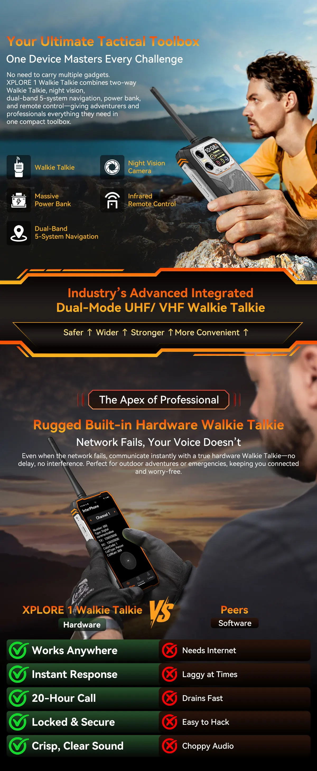 - Díky své váze (cca 638 g) a rozměrům se jedná o masivní zařízení určené pro profesionály, záchranné složky a náročné cestovatele, kteří vyžadují maximální výdrž a komunikační nezávislost.
