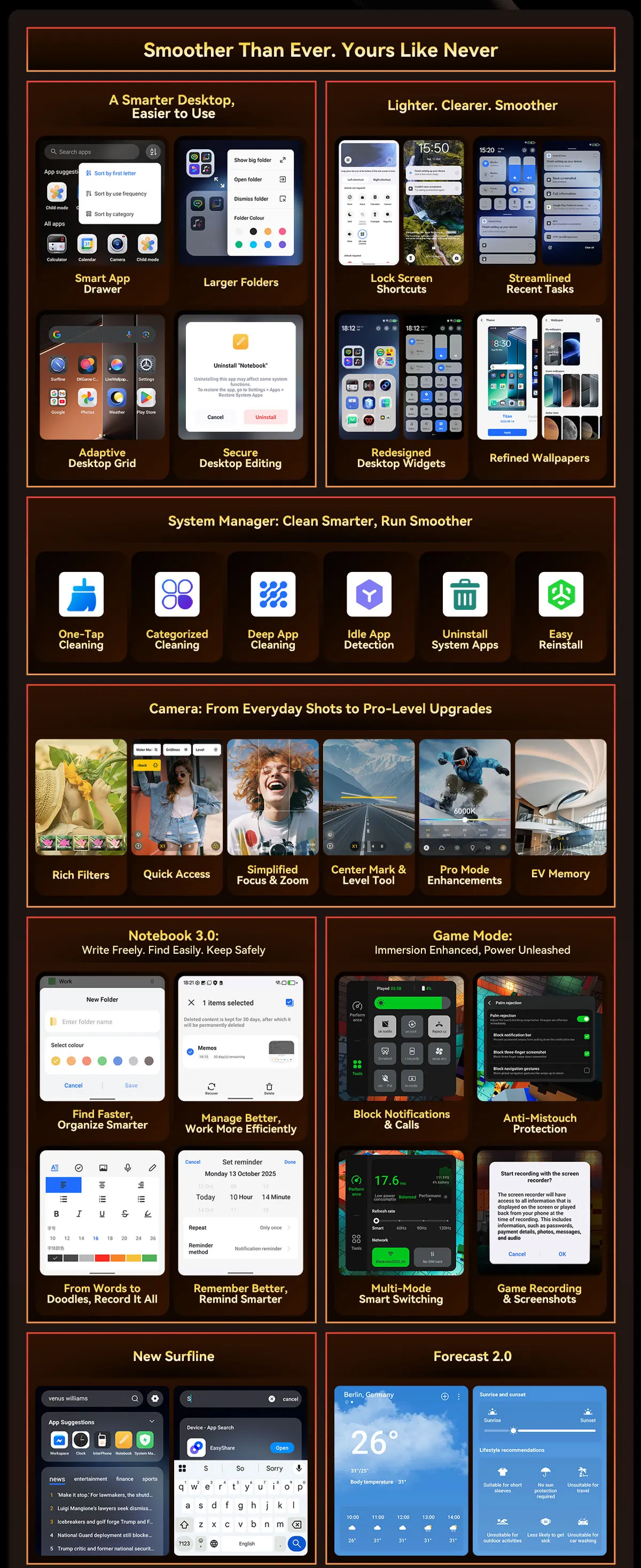- Další výbava: Duální LED svítilna (170 lumenů), IR dálkové ovládání pro spotřebiče, NFC, podpora 5G, Wi-Fi 6 a Android 15.