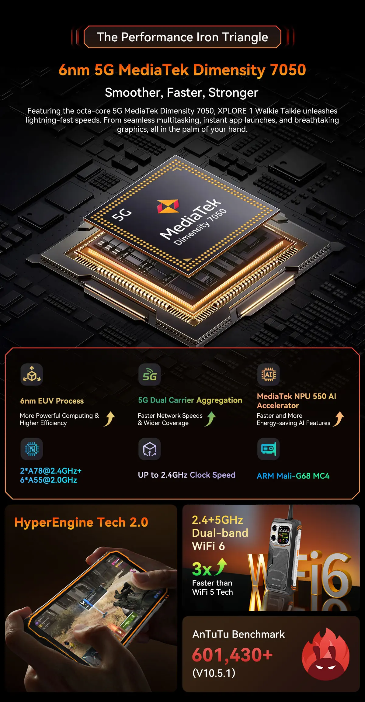 Blackview XPLORE 1 (v konfiguraci 12+256 GB) je robustní 5G chytrý telefon uvedený na trh v roce 2025, který kombinuje extrémní odolnost s moderními technologiemi, jako je duální displej a vestavěná funkce vysílačky (Walkie Talkie).
