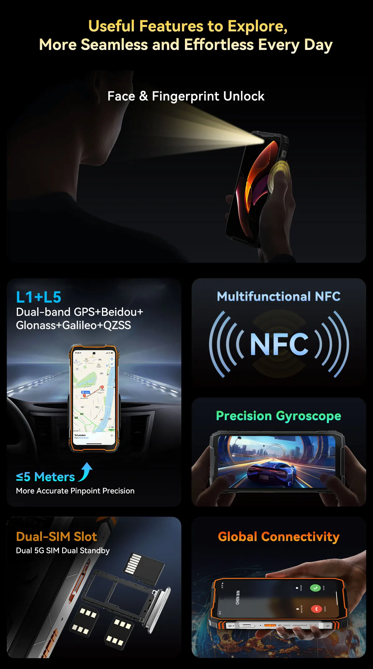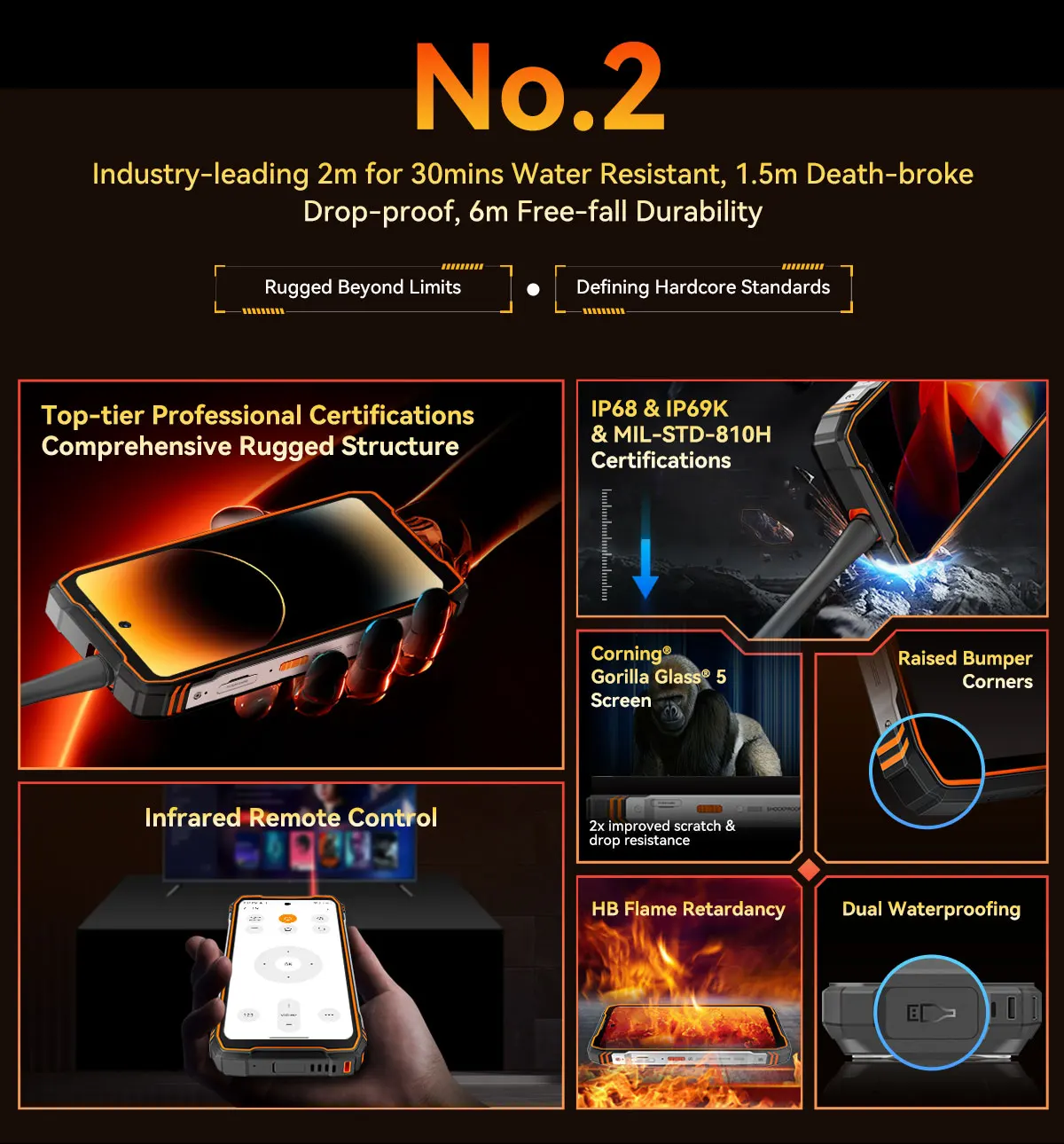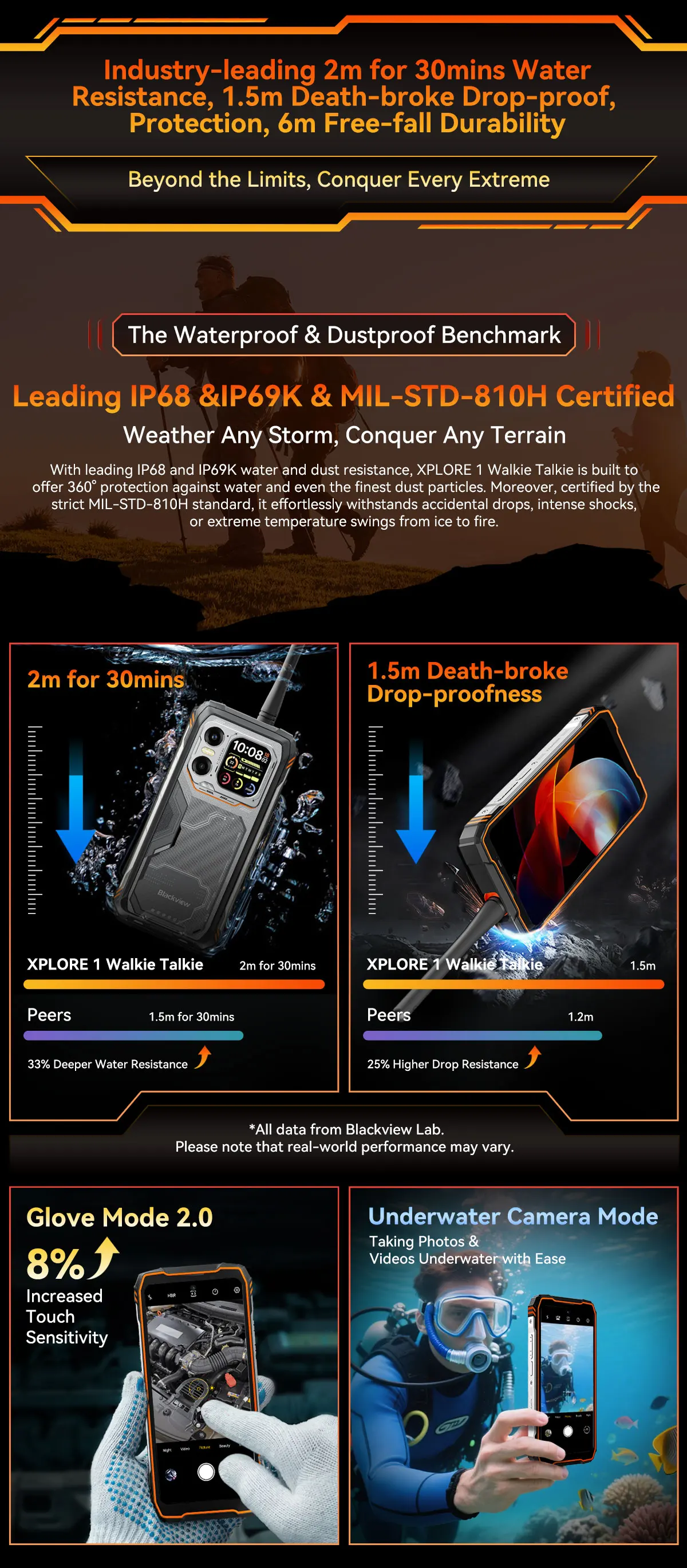 - Extrémní odolnost: Certifikace IP68, IP69K a MIL-STD-810H (odolnost proti pádům, vodě, prachu a vysokému tlaku).