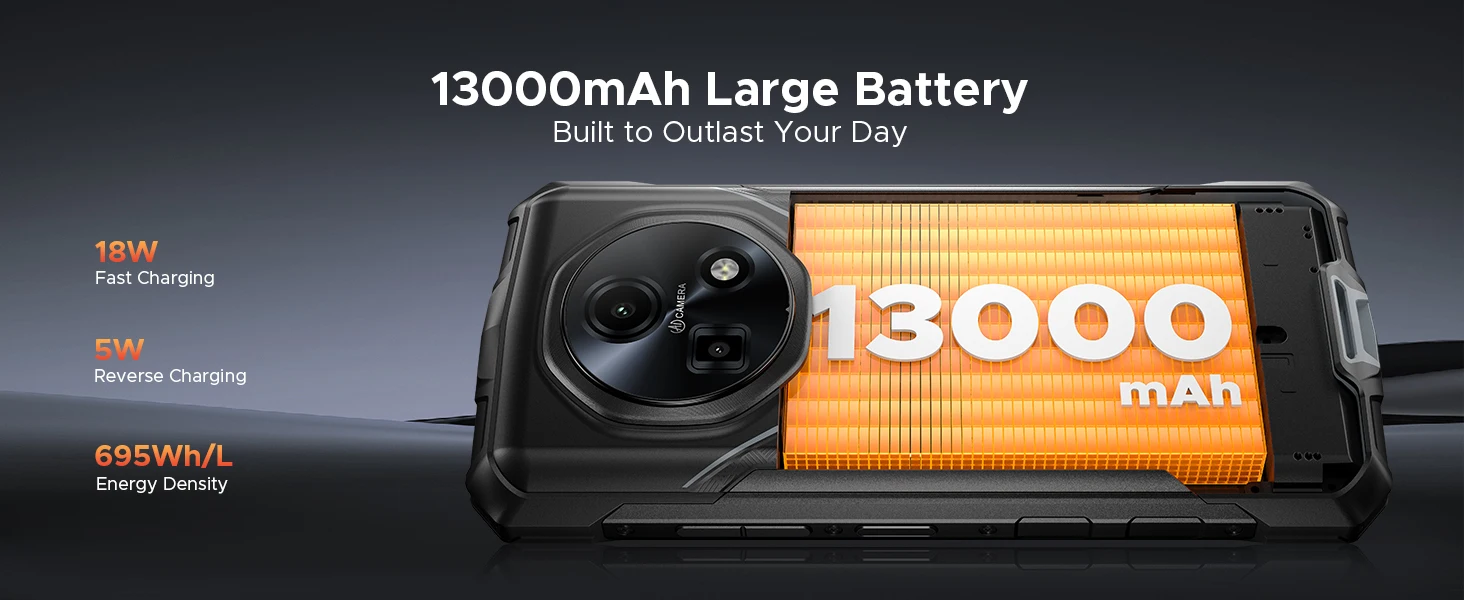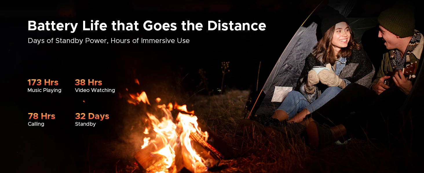 - Obří baterie: Kapacita 13 000 mAh zajišťuje výdrž až 38 hodin sledování videa nebo 78 hodin hovorů. Podporuje 18W rychlonabíjení a 5W reverzní nabíjení pro napájení jiných zařízení.