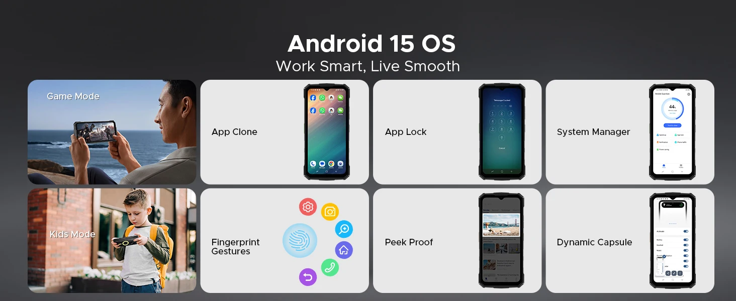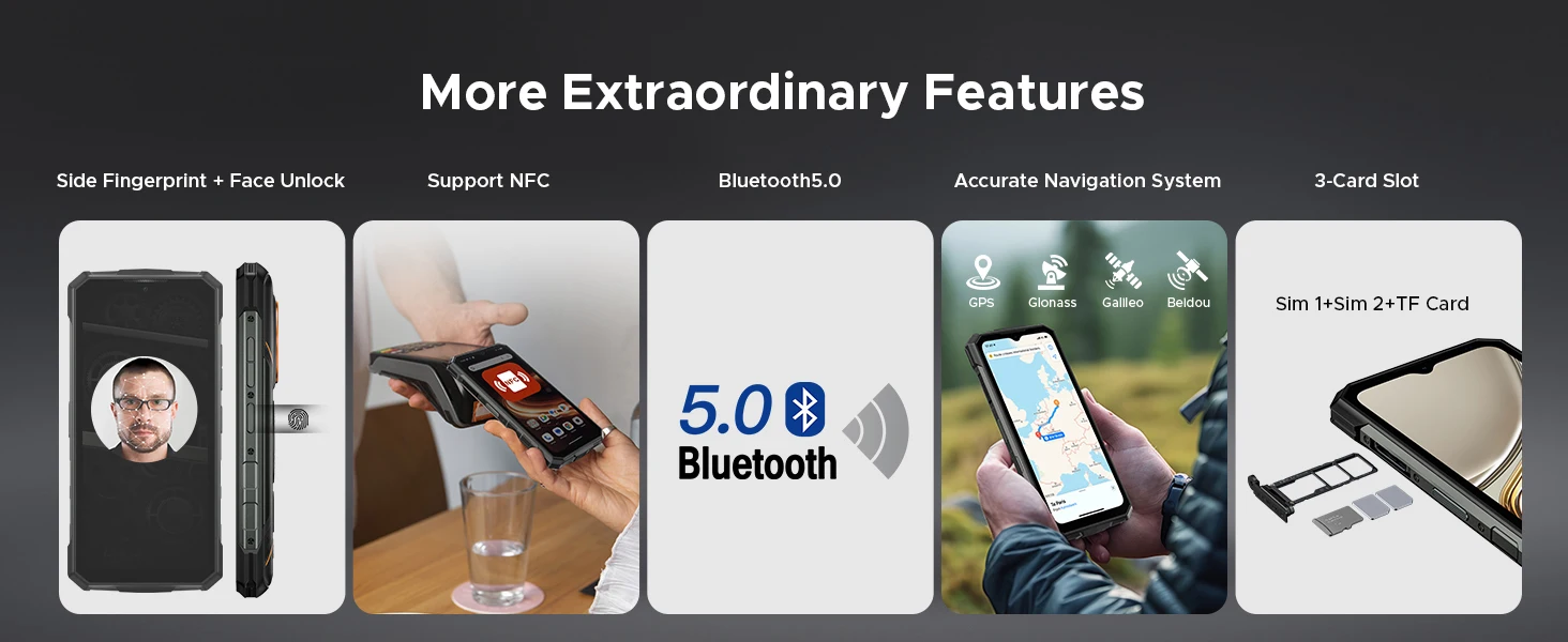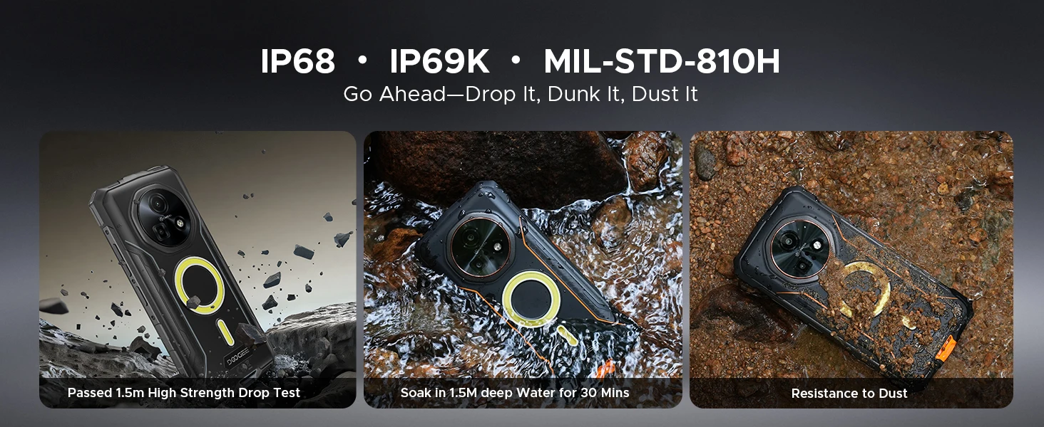 - Odolnost: Telefon splňuje armádní standard MIL-STD-810H a má certifikace IP68 a IP69K (odolnost proti vodě, prachu a pádům).