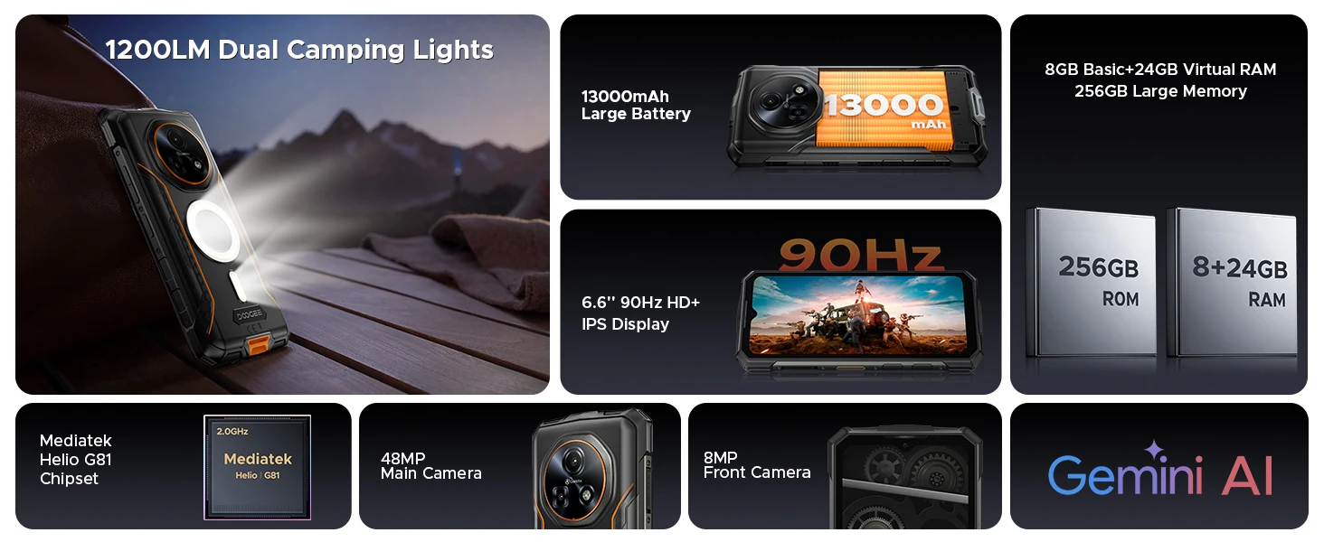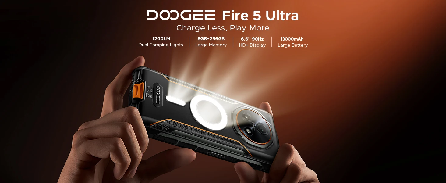 Doogee Fire 5 Ultra je vysoce odolný 4G chytrý telefon uvedený na trh v září 2025. Je navržen pro extrémní venkovní podmínky a od základního modelu Fire 5 se liší především integrovaným duálním kempingovým světlem a vyšší kapacitou paměti.
