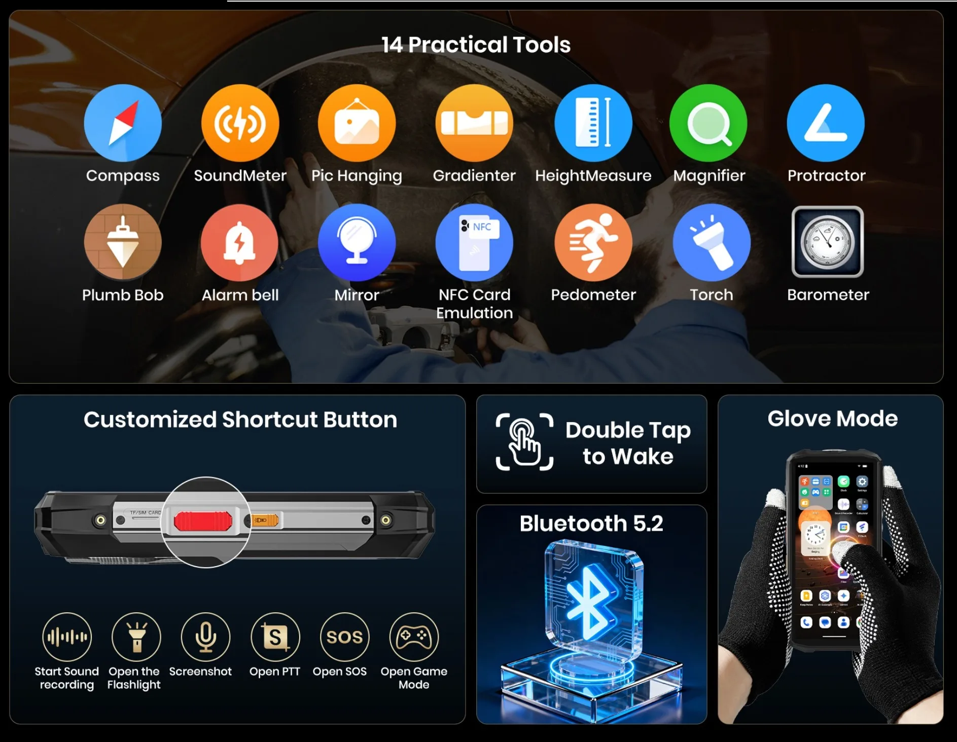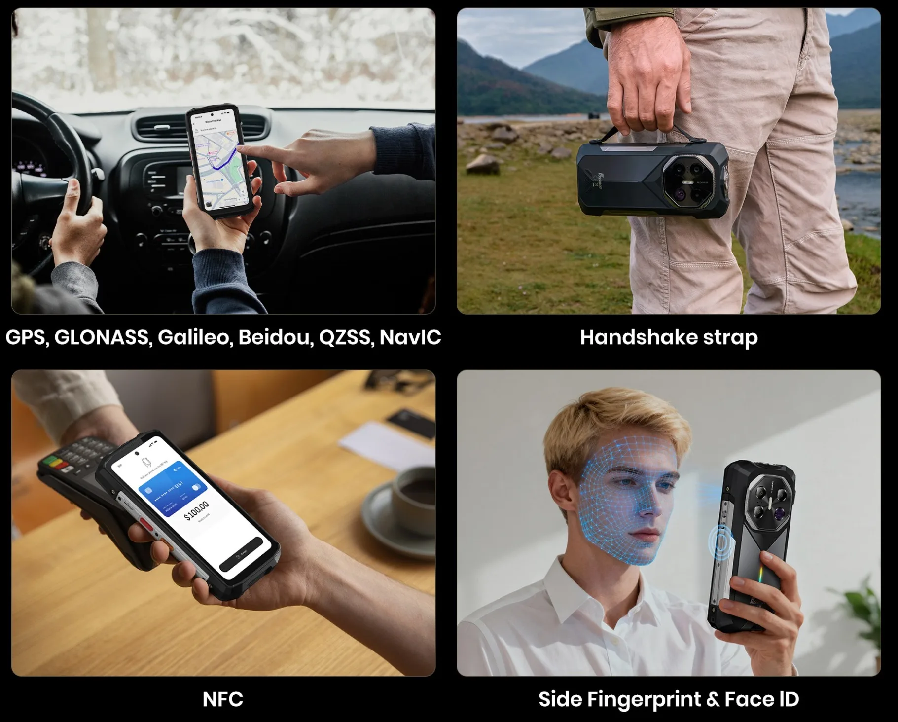 - Odolnost: Certifikace IP68, IP69K a armádní standard MIL-STD-810H (odolnost proti pádům z 2 m a ponoření do vody).