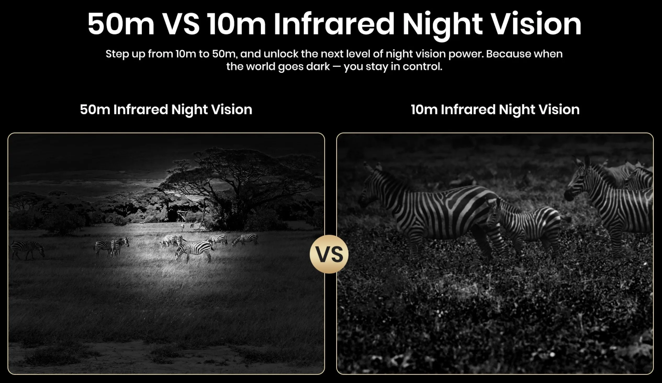 Průlomové noční vidění: Jako první na světě nabízí 64MP infračervené noční vidění s ultra dlouhým dosahem až 50 metrů, což výrazně překonává standardních 5–10 metrů u konkurenčních modelů.