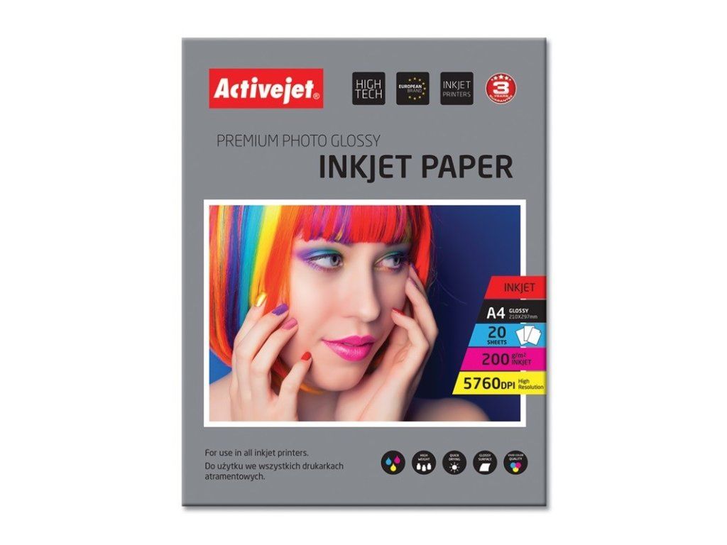 Activejet AP4-200G20 (A4; 20 kopií) Lesklý papír| Povrchový materiál | Pryskyřice |