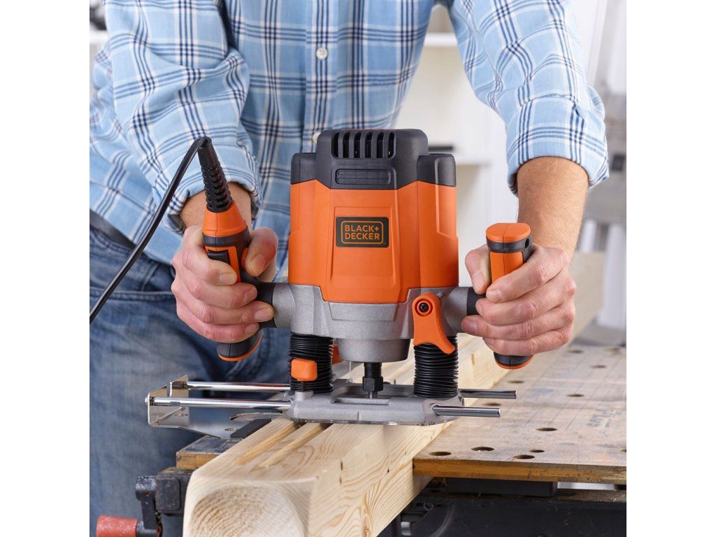 Black & Decker KW1200EKA-QS Horní frézka / ořezávací stroj Černá, Šedá, Oranžová| Barva | Šedá, Černá, Oranžová |