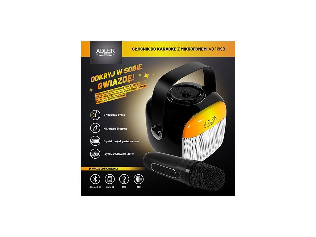 Adler AD 1199 černý karaoke reproduktor s mikrofonem - SD/USB/AUX/Bluetooth
