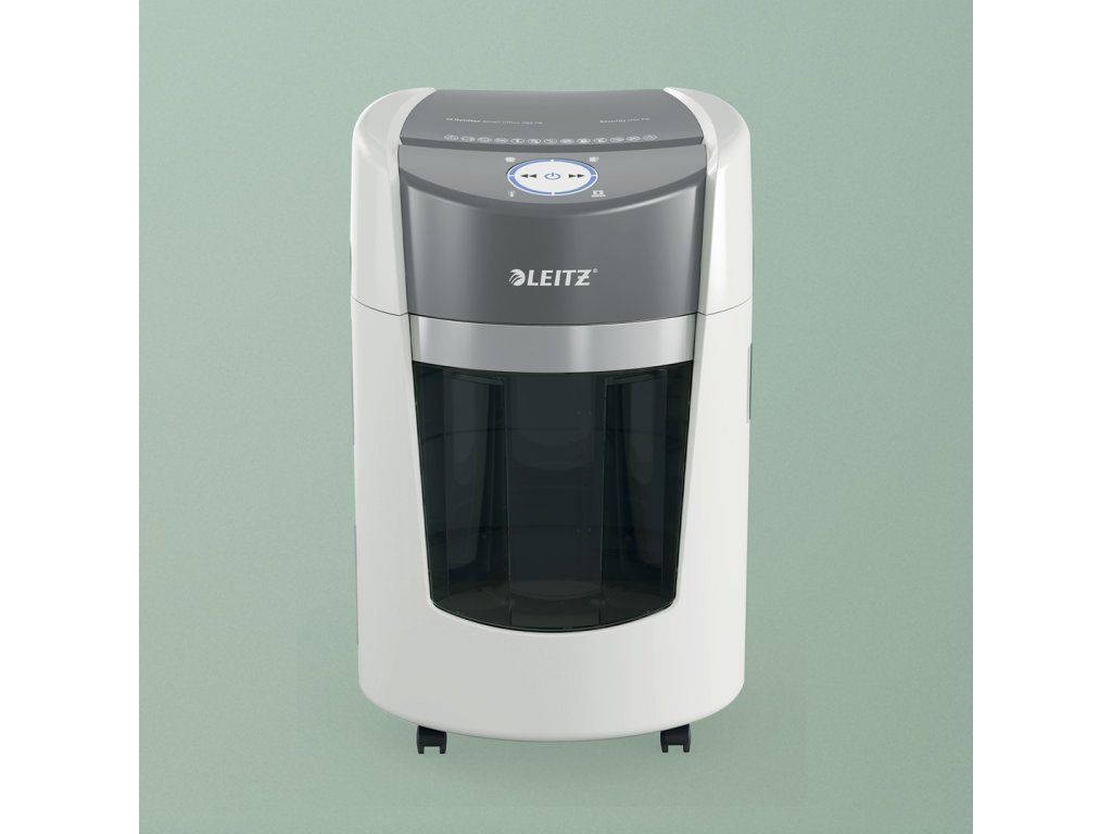 Leitz IQ OptiMax Small Office 350 skartovačka Na malé částice 58 dB 22,3 cm Šedá, Bílá