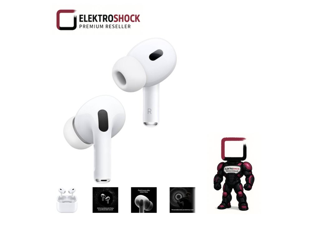 Špičková sluchátka napěchovaná moderními technologiemi pro opravdu dokonale vyladěný zvukový zážitek. Aktivní potlačení hluku (až 48000x za sekundu) a adaptivní režim propustnosti. Personalizovaný prostorový zvuk s dynamickým snímáním polohy hlavy. Odolné proti vodě a potu s krytím IPX4 (sluchátka i pouzdro). Dotykové ovládání. MagSafe nabíjecí pouzdro s reproduktorem a poutkem pro zavěšení. Výdrž sluchátek až 6 hodin na jedno nabití, spolu s pouzdrem až 30 hodin (se zapnutým ANC). Součástí balení jsou čtyři velikosti silikonových špuntů (XS, S, M, L).