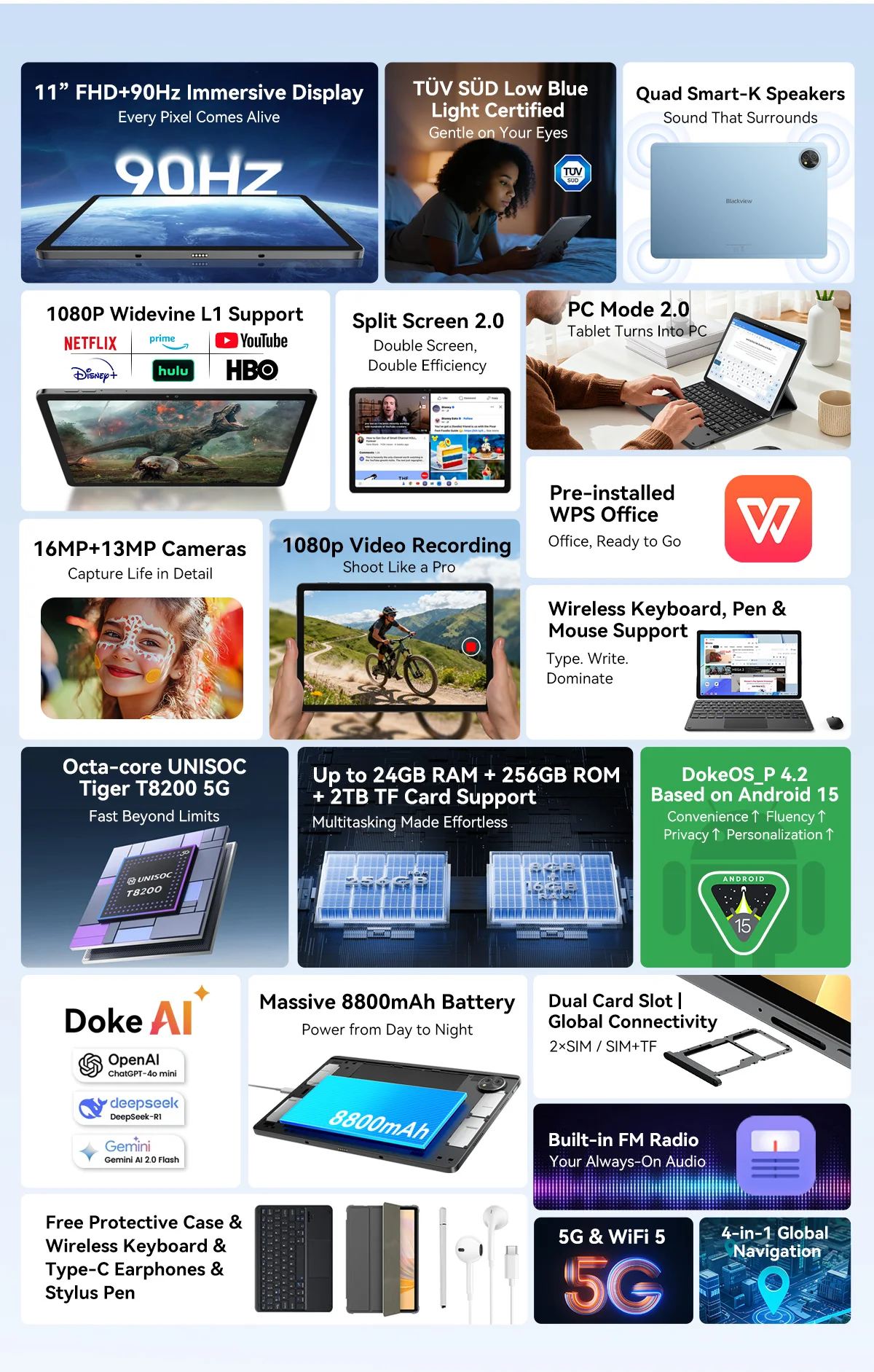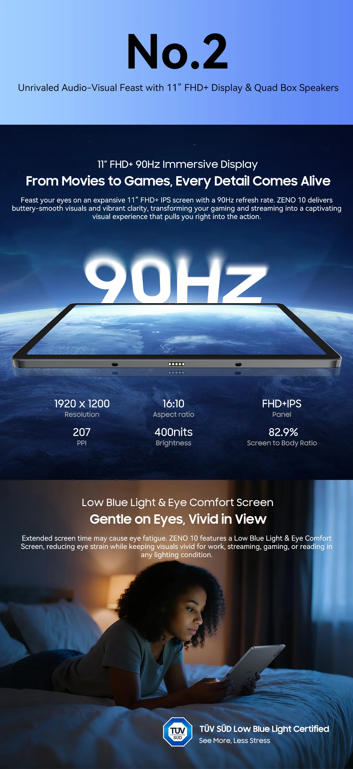 Displej : 11,0" FHD+ IPS, obnovovací frekvence 90 Hz, jas 400 nitů