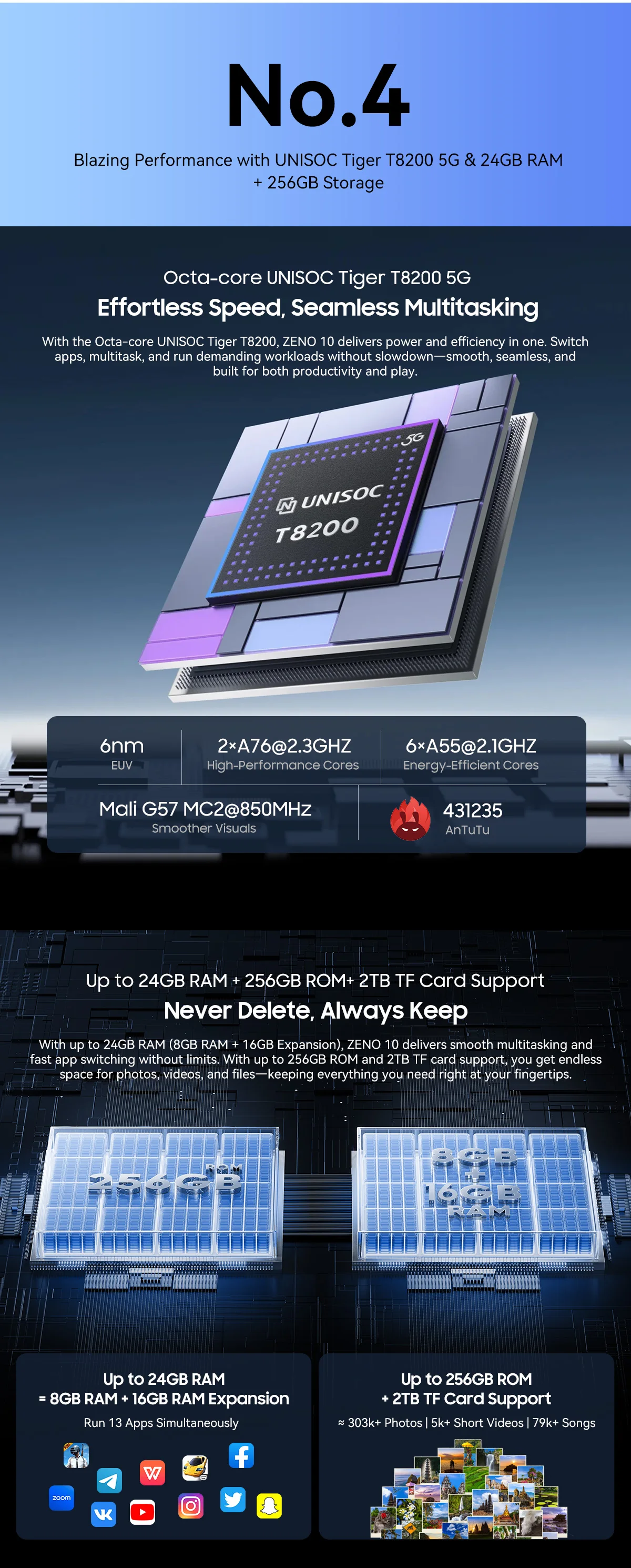 CPU : Osmijádrový UNISoC Tiger T8200 5G