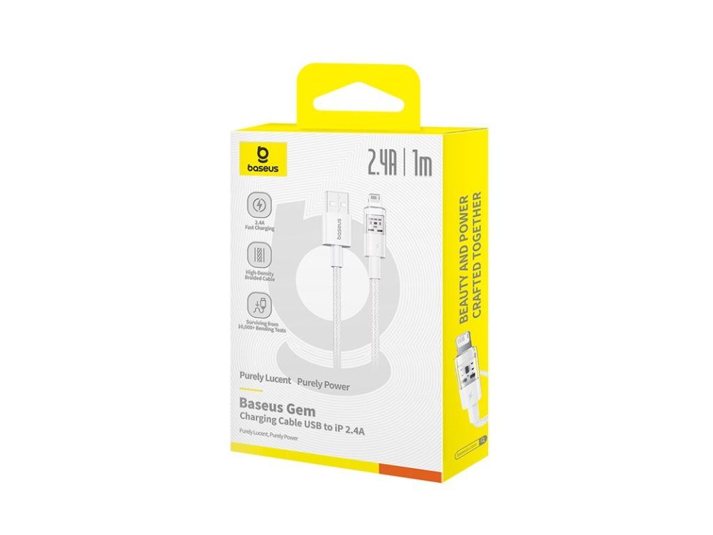 Baseus Gem Rychlonabíjecí kabel USB na IP 2,4A 1 m Bílá| Konektor USB typ A | Ano |