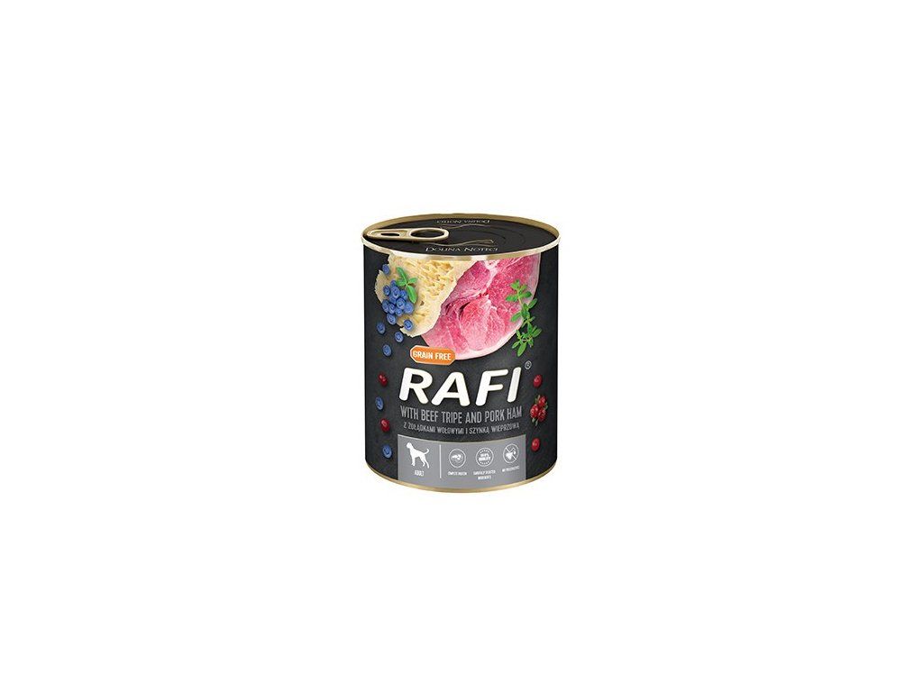 Dolina Noteci Rafi Mokré krmivo pro psy s hovězími žaludky a šunkou - 800g| Kategorie produktu | Vlhké krmivo |