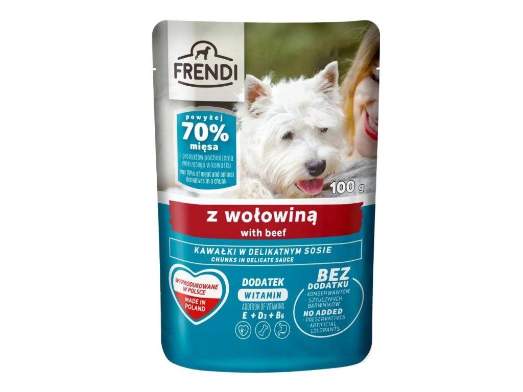 FRENDI Kousky v omáčce Hovězí – mokré krmivo pro psa - 100g| Psí plemeno | Jakékoli plemeno |